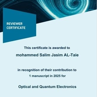 قام التدريسي في قسم الفيزياء بكلية التربية جامعة ميسان الأستاذ المساعد الدكتور محمد سالم جاسم مقيماً علمياً في احد المجلات العالمية ضمن مستوعبات سكوبس وكلاريفيت وكان عنوان البحث