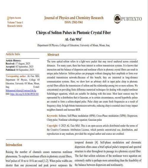 دراسة تأثير (Chirp) على انتشار النبضات الانفرادية (Solitons) في ألياف البلورات الضوئية.