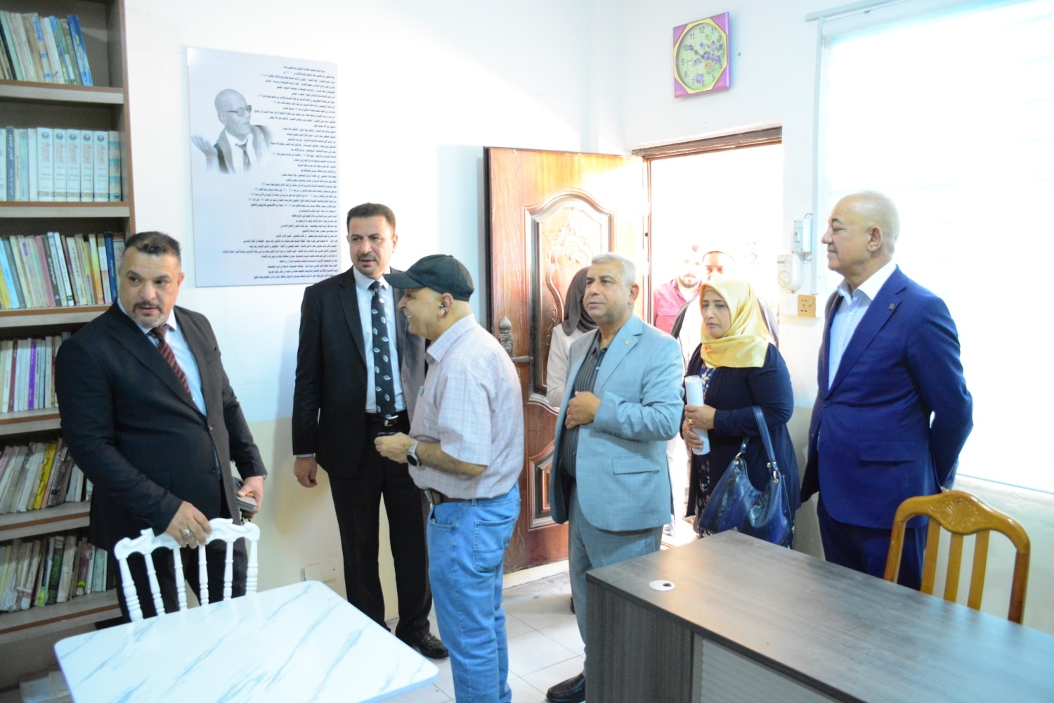 وأجرت اللجنة جولة ميدانية تفقدية داخل أروقة الكلية بمختلف بناياتها واطلعت على القاعات الدراسية المخصصة لطلبة الدكتوراه والماجستير وعلى الوسائل التكنولوجية المتقدمة المستخدمة لالقاء المحاضرات كشاشات العرض ، وقاعة المطالعة العامة ومكتبة الكلية العامة ومكتبة المرحوم (الاستاذ الدكتور عبد الحسين حداد )