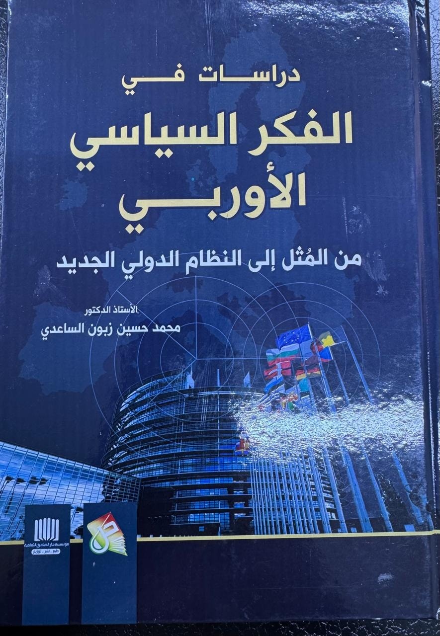 صدر للأستاذ الدكتور محمد حسين زبون الساعدي، رئيس قسم التاريخ في كلية التربية بجامعة ميسان، كتاب بعنوان دراسات في الفكر السياسي الأوروبي: من المثل إلى النظام الدولي الجديد، عن دار صفاء للطباعة والنشر في عمّان – الأردن.