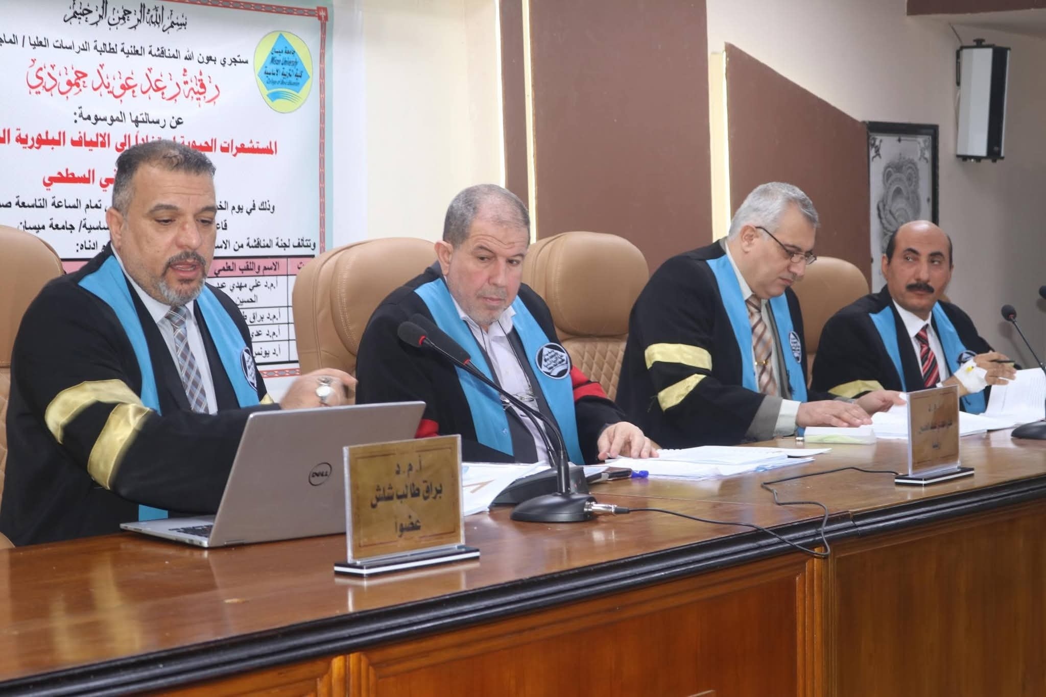 جلسة مناقشة رسالة الماجستير للطالبة رُقية رعد علي جوني في كلية التربية الأساسية، وذلك صباح يوم الخميس الموافق 26/2/2026 على قاعة المعرفة في الكلية، بحضور عدد من أعضاء الهيئة التدريسية وطلبة الدراسات العليا.