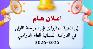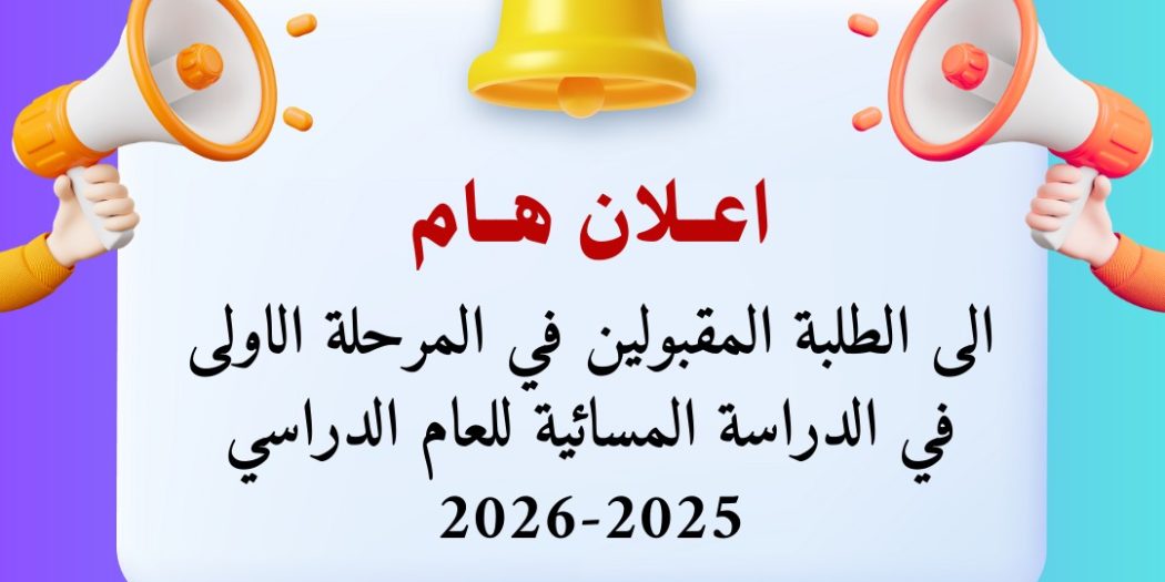 علان إلى طلبة المرحلة الأولى الدراسة المسائية