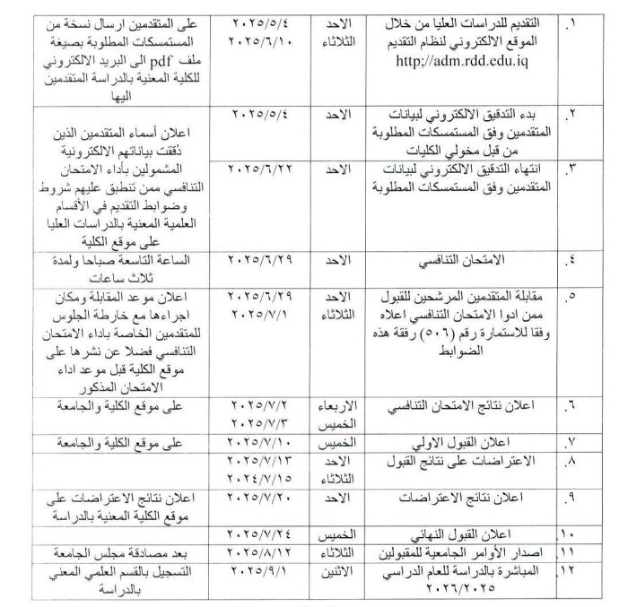 الجدول الدراسي للدراسات العليا (ماجستير)