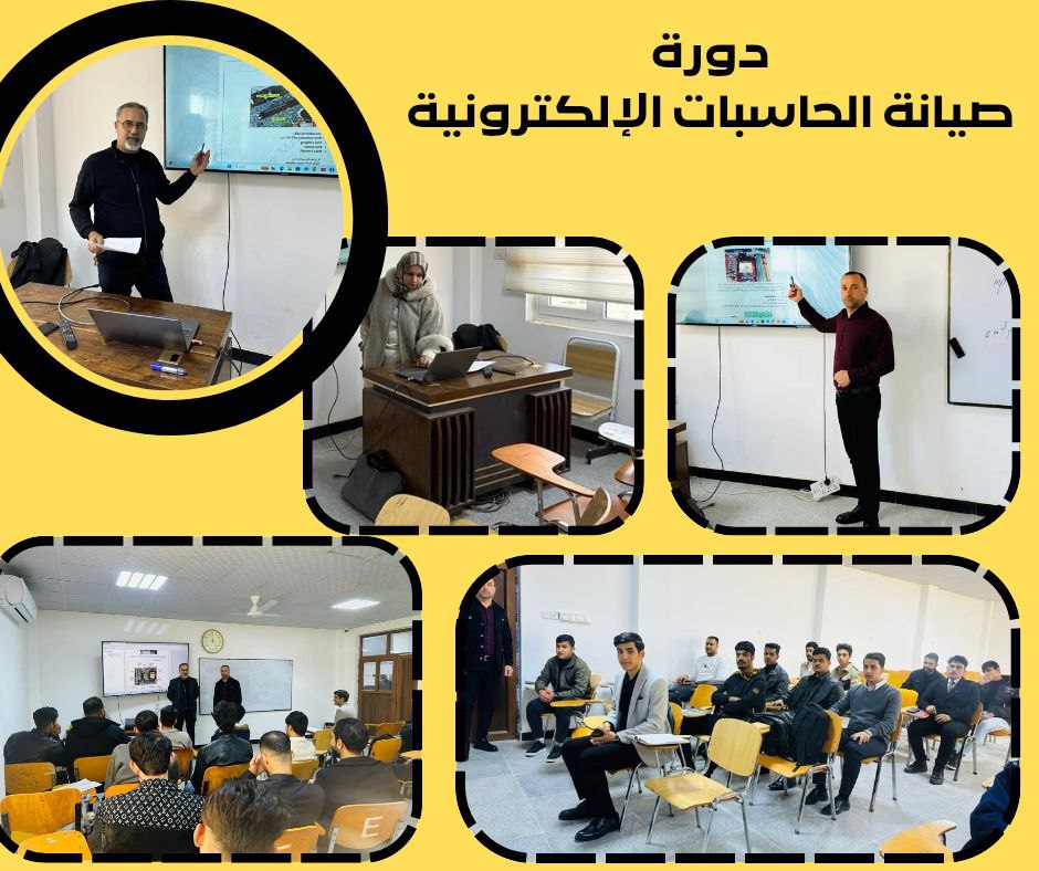 أقامت وحدة التعليم المستمر في كلية الهندسة دورة تدريبية حول صيانة الحاسبات الإلكترونية، حيث تضمنت محاور الدورة الجوانب المتعلقة بصيانة الأجهزة (الهاردوير) والبرمجيات (السوفت وير).