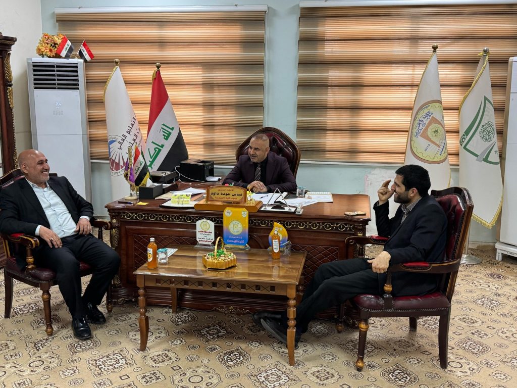 استقبل السيد عميد كلية الهندسة، الأستاذ الدكتور عباس عودة داود، في مكتبه اليوم الأحد الموافق 06/04/2025، السيد محمد جبار الكعبي، مستشار محافظ ميسان لشؤون الأقضية والنواحي، للتهنئة بمناسبة عيد الفطر المبارك وتبادل التهاني مع السيد العميد، بهذه المناسبة، تبرز هذه الزيارات روح التآخي والتواصل بين الجهات الحكومية والمؤسسات الأكاديمية،