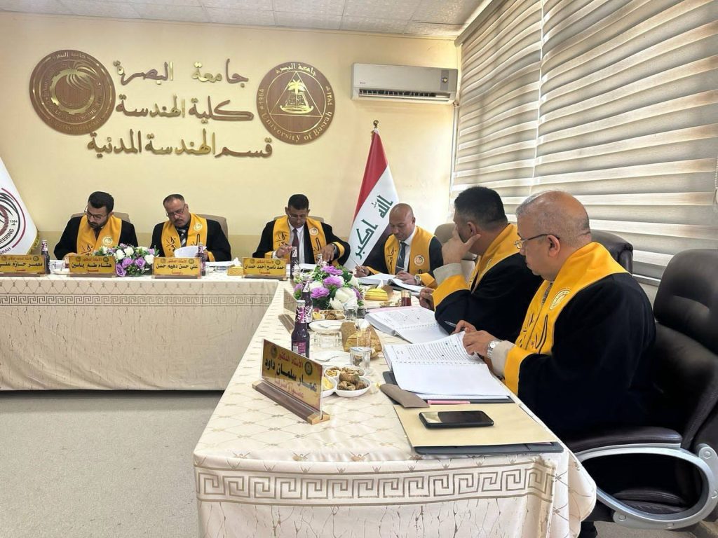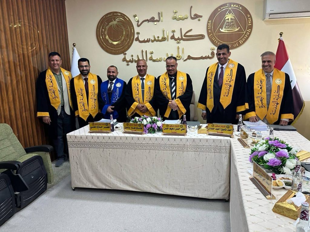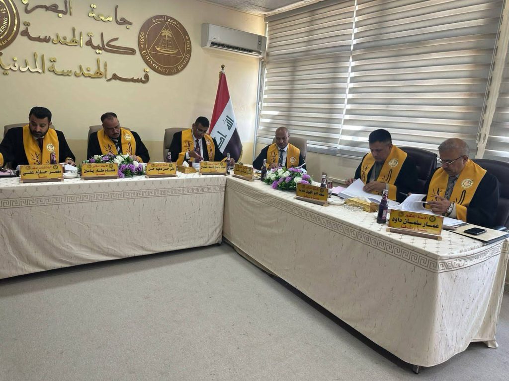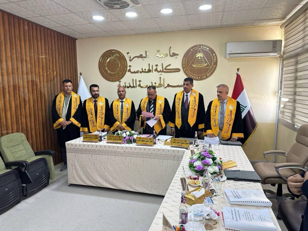 والمقدمة من قبل الطالب حيدر عبد الرضا خنفر، وذلك يوم الخميس الموافق 17 نيسان 2025، على قاعة المناقشات في كلية الهندسة – جامعة البصرة / قسم الهندسة المدنية، والذي يُعد من الأقسام العريقة والمتميزة على مستوى العراق في مجال الهندسة المدنية.