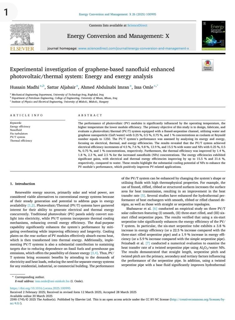 في المجلة العلمية العالمية: Energy Conversion and Management: X