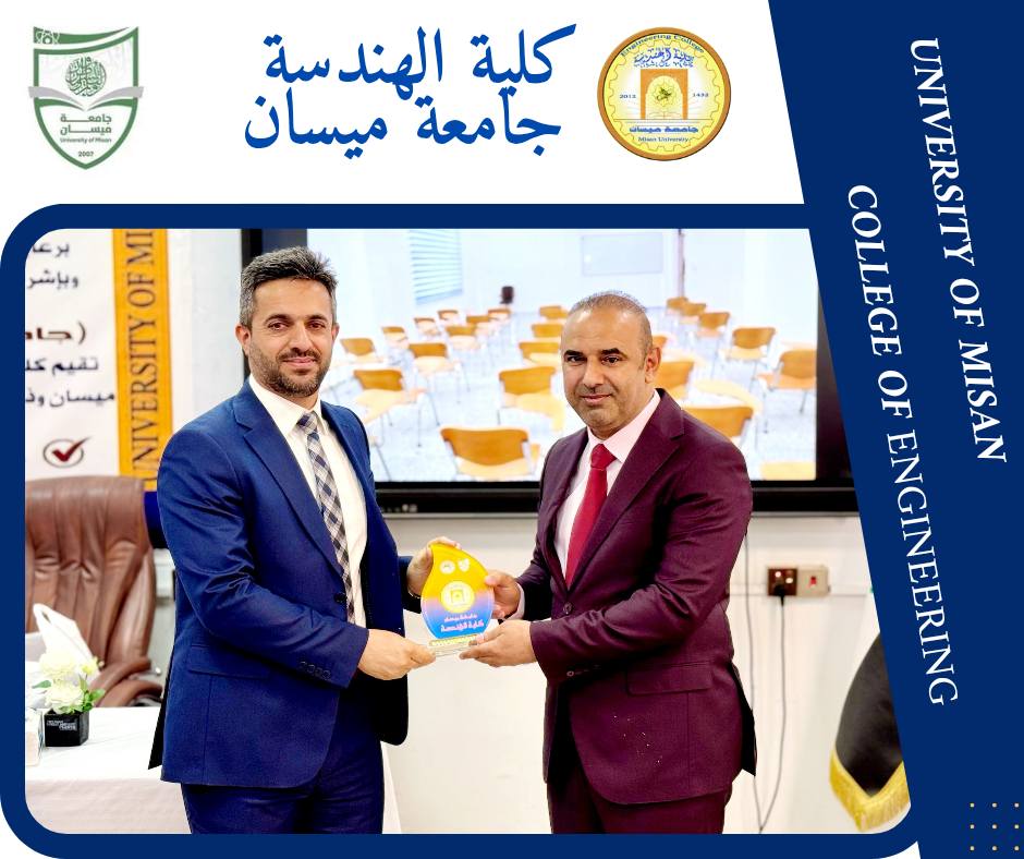 ضمن فقرات احتفالية كلية الهندسة بالذكرى الثامنة عشرة لتأسيس جامعة ميسان، أقامت الكلية فعالية خاصة لتكريم نخبة من التدريسيين والموظفين المتميزين، تقديراً لجهودهم المبذولة وعطائهم المتواصل في مختلف مفاصل العمل الأكاديمي والإداري.