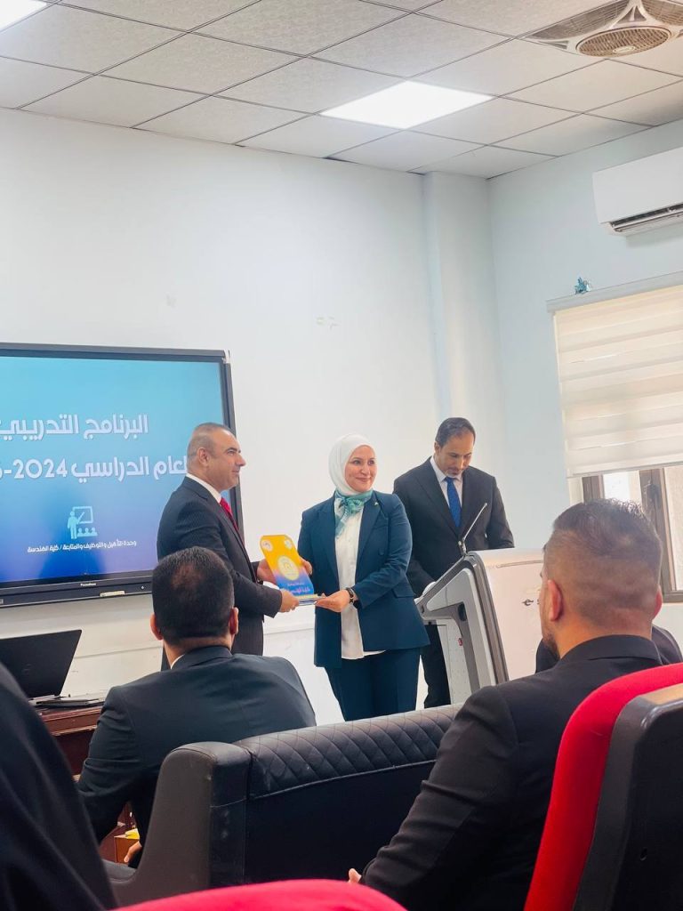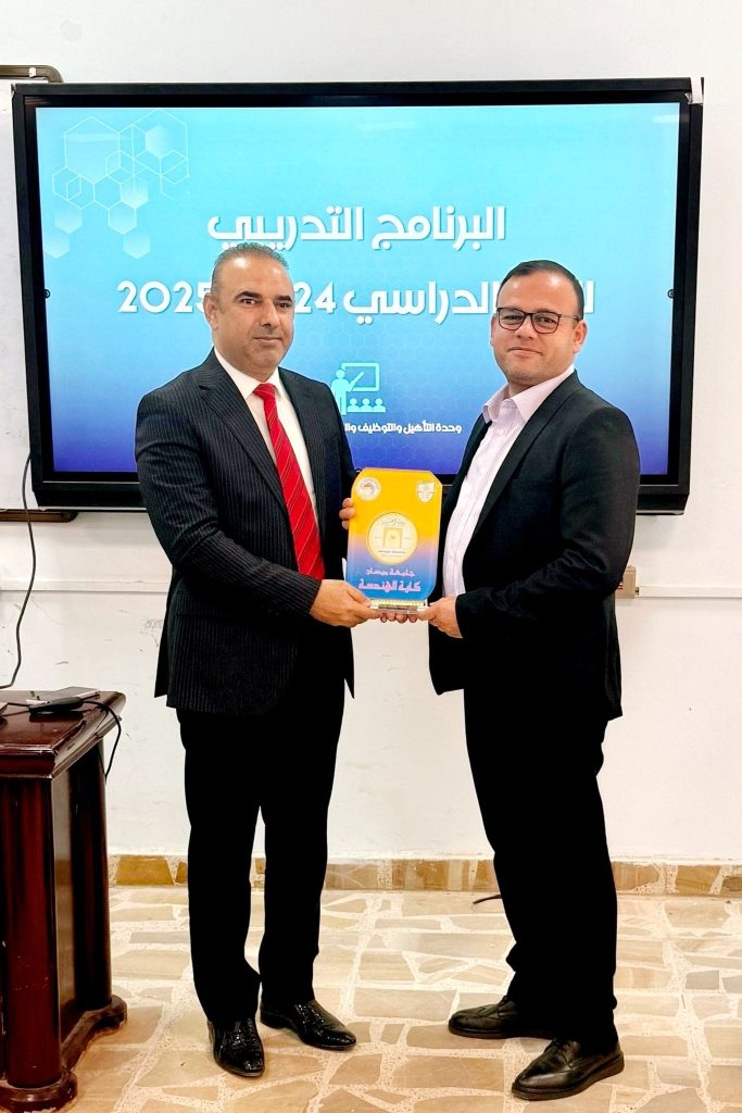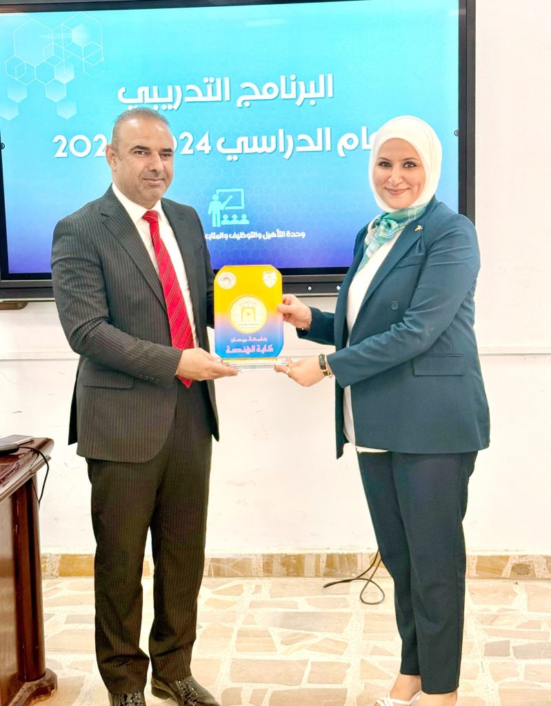 وفي لفتة تقديرية، كرّمت الكلية السادة المدربين من معهد التدريب النفطي بدرع الكلية، تثميناً لجهودهم الفاعلة في إقامة ورش العمل والدورات التخصصية، لا سيّما في مجال السلامة المهنية. كما تم تكريم نقابة المهندسين بدرع الكلية تقديراً لدورها البارز في دعم وتأهيل الطلبة والخريجين في جامعات ميسان.