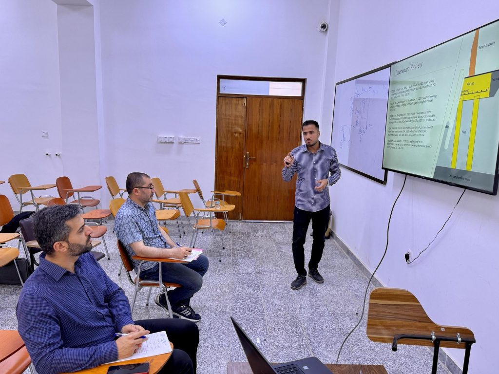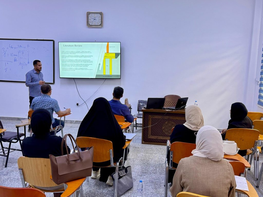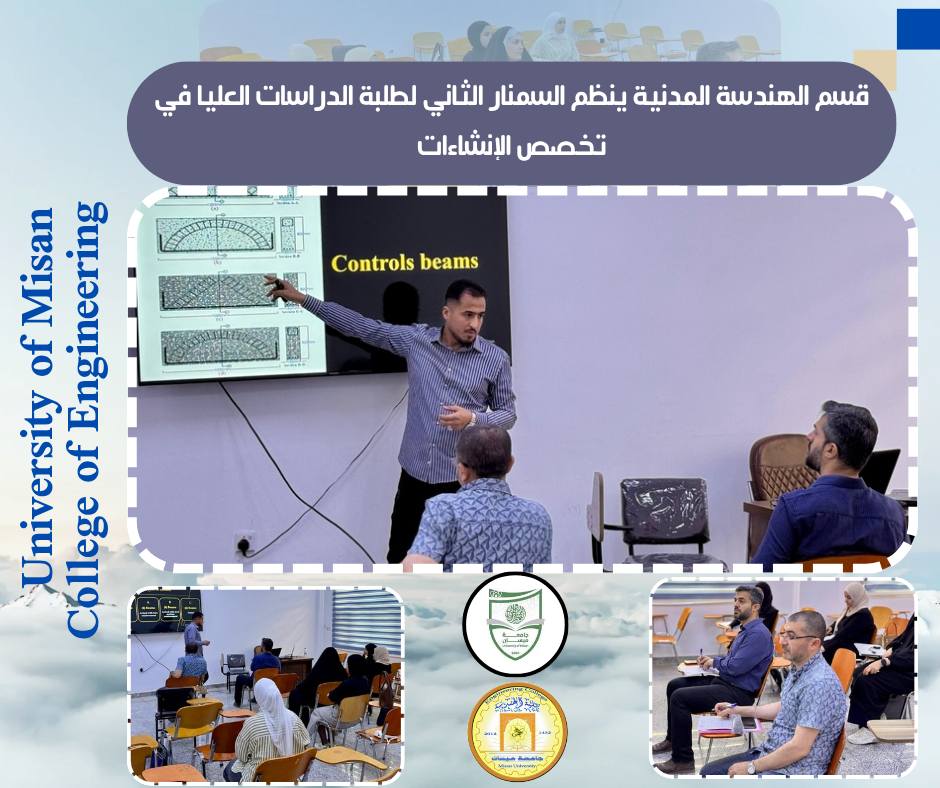 في إطار المتابعة المستمرة لطلبة الدراسات العليا، نظّمت لجنة الدراسات العليا في قسم الهندسة المدنية – تخصص الإنشاءات، يوم الثلاثاء الموافق 29 نيسان 2025، السمنار الثاني لطلبة الدراسات العليا الذين هم في مرحلة البحث العلمي.
