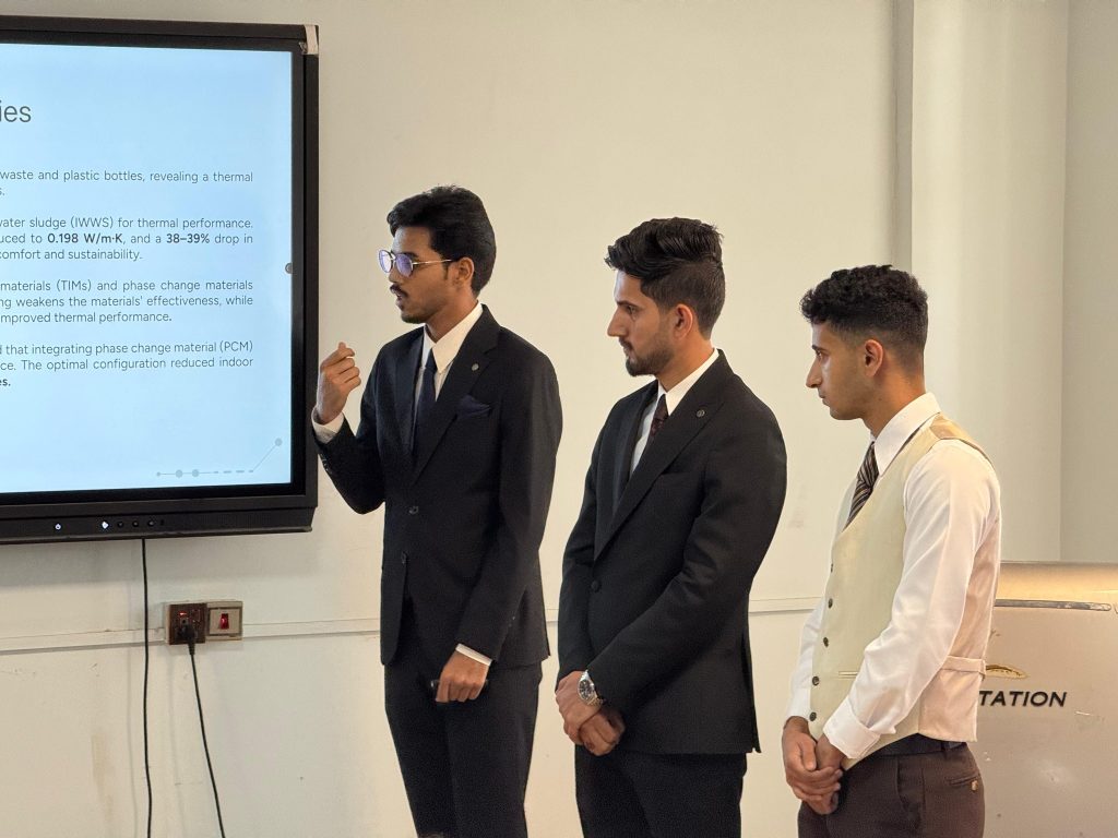 وقد تنوعت المشاريع المقدمة بين مجالات هندسة السيطرة، والتصميم الميكانيكي، والطاقة الحرارية، والطاقة المتجددة، حيث عرض الطلبة ثمرة جهودهم الأكاديمية والبحثية خلال السنوات الدراسية الماضية.
