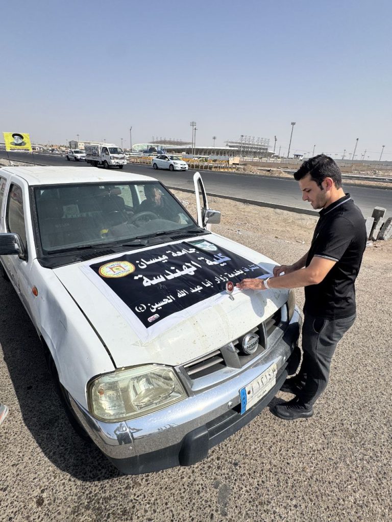 برعاية عميد كلية الهندسة الأستاذ الدكتور عباس عوده داود، نظّمت كلية الهندسة – شعبة النشاطات الطلابية، حملة تطوعية شارك فيها عدد من أساتذة وموظفي الكلية، لتوزيع المياه والمرطبات والعصائر على المواكب الخدمية في طريق الزائرين السائرين على الأقدام نحو كربلاء المقدسة لإحياء أربعينية الإمام الحسين (عليه السلام). وفي تصريح له، أكد السيد العميد أن هذه المبادرة تأتي تعظيمًا لشعائر الله، ووفاءً لمسيرة الإمام الحسين (عليه السلام) التي أرست قيم العدالة والكرامة، وتجديدًا للعهد مع صاحب القبة الشريفة، من خلال الخدمة والتفاني في سبيل راية الإصلاح التي رفعها سيد الشهداء في واقعة الطف الخالدة. من جانبهم، عبّر المشاركون في الحملة عن اعتزازهم بالمساهمة في هذه الفعالية الإنسانية، مؤكدين أن خدمة الزائرين شرف عظيم، وأنهم يستلهمون من ثورة الإمام الحسين (عليه السلام) قيم البذل والعطاء، مستشعرين عظمة هذه المناسبة الإيمانية التي توحّد القلوب على حب آل بيت النبي محمد (صلى الله عليه وآله). وتُجسّد هذه الحملة روح التكافل الاجتماعي وتعزز قيم العطاء والعمل التطوعي، كما تعبّر عن عمق المحبة والولاء لسيد الشهداء (عليه السلام)، في صورة مشرّفة تعكس تلاحم أبناء المجتمع وحرصهم على إحياء المناسبات الدينية الخالدة بروح المسؤولية والانتماء.