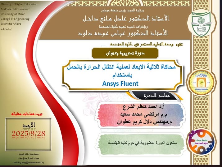 التدريسين في قسم الهندسة الميكانيكية في كليتنا، يوم الاحد الموافق28/09/2025، ستنعقد الدورة في حرم كلية الهندسة.
