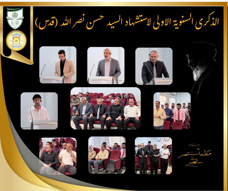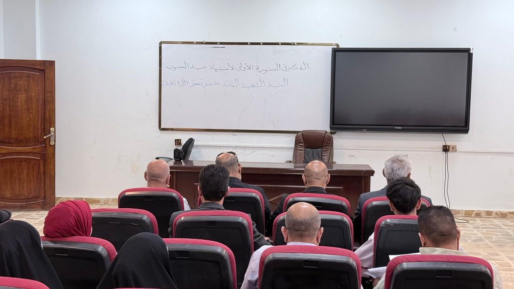 نظّمت كلية الهندسة اليوم الثلاثاء الموافق 30/9/2025 حفلاً تأبينياً بمناسبة الذكرى السنوية الأولى لاستشهاد السيد حسن نصر الله (قدس). أقيمت المراسم في رحاب الكلية – قاعة المرحوم الدكتور عادل عبد الله شهيب، بحضور السيد عميد كلية الهندسة الأستاذ الدكتور عباس عودة داود، ومعاوني العميد، ورؤساء الأقسام العلمية، وجمع من التدريسيين والموظفين.