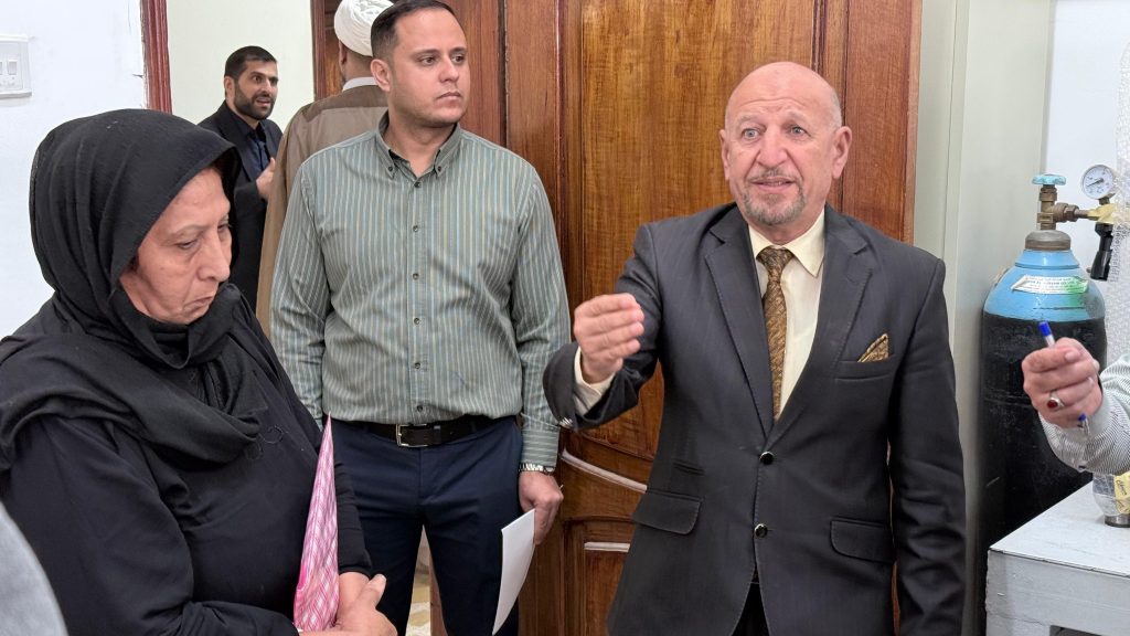 وكان في استقبال اللجنة السيد عميد كلية الهندسة الأستاذ الدكتور عباس عودة داود، ومعاون العميد للشؤون الإدارية والقانونية الأستاذ الدكتور سعد فهد رسن، ومعاون العميد للشؤون العلمية والدراسات العليا الأستاذ الدكتور حسنين عباس حسن، ورئيس قسم الهندسة الكيمياوية الأستاذ المساعد الدكتور مظفر يعقوب حسين، فضلاً عن نخبة من تدريسيي القسم.