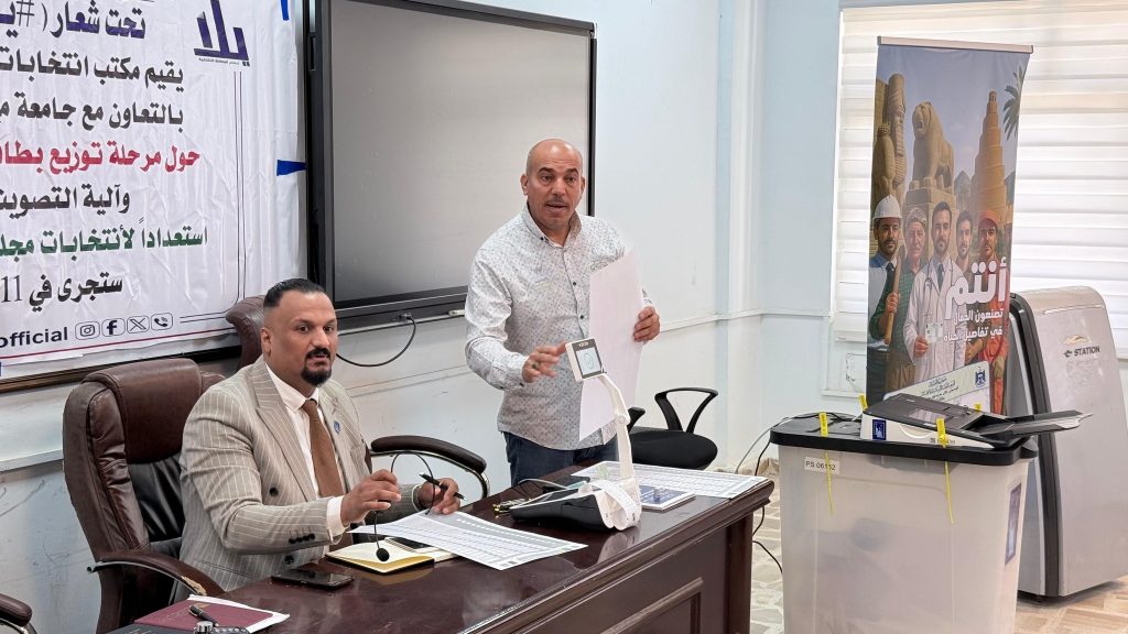 وخلال الندوة، تم حث طلبة الكلية على أهمية استلام بطاقة الناخب البايومترية لضمان المشاركة الفاعلة في العملية الانتخابية، كما جرى استعراض آخر استعدادات المفوضية، التي شملت تهيئة الجوانب الفنية واللوجستية الخاصة بمراكز الاقتراع البالغ عددها 231 مركزاً موزعة بين مركز المحافظة والأقضية والنواحي، إلى جانب تدريب نحو 6500 موظف اقتراع من شريحة الموظفين والخريجين وطلبة الكليات، تم اختيارهم عبر القرعة.