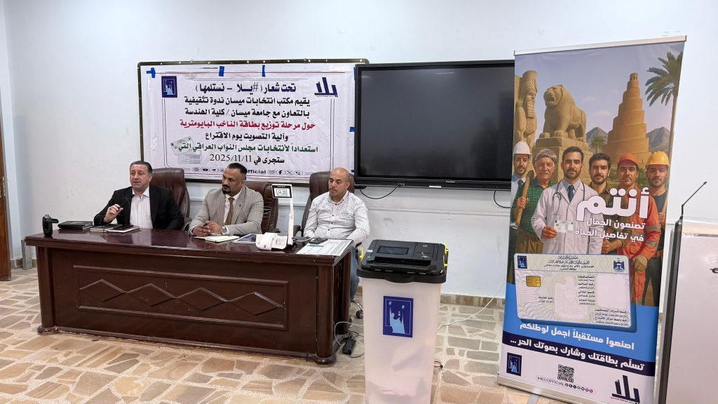 أقام مكتب انتخابات ميسان بالتعاون مع جامعة ميسان – كلية الهندسة ندوةً تثقيفية حول استعدادات المفوضية العليا المستقلة للانتخابات لإجراء انتخابات مجلس النواب العراقي لعام 2025، وذلك صباح اليوم الثلاثاء الموافق 21/10/2025 على قاعة كلية الهندسة.