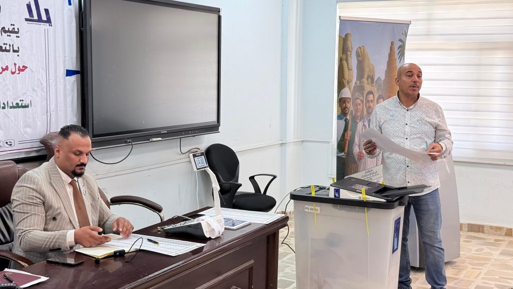 وتناول المحاضرون كذلك إجراءات المفوضية الخاصة بضمان نزاهة وشفافية العملية الانتخابية، فيما قدّمت شعبة الإجراءات والتدريب عرضاً عملياً توضيحياً حول آلية عمل جهاز العدّ والفرز الإلكتروني وخطوات التصويت من خلال تطبيق عملي مباشر أمام الحضور.