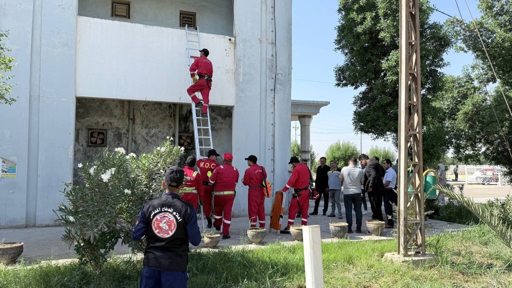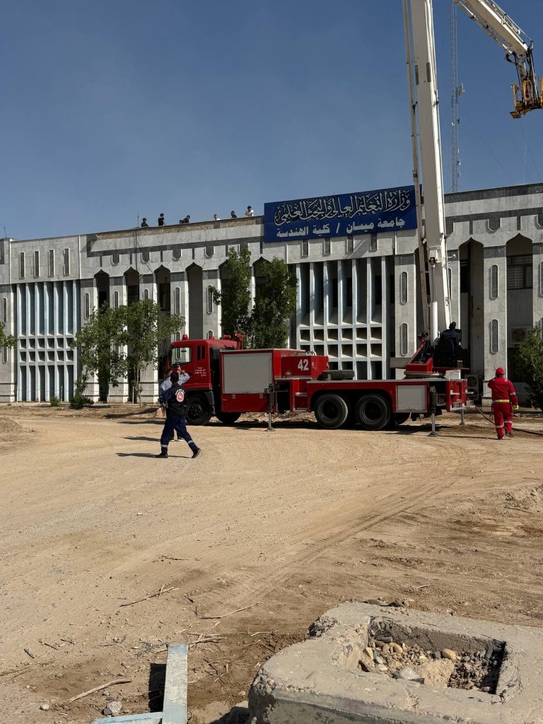 نُفِّذت صباح اليوم الأربعاء الموافق 22 تشرين الأول 2025 في كلية الهندسة – جامعة ميسان بالتعاون مع مديرية الدفاع المدني في ميسان ممارسة ميدانية لإجراءات الدفاع المدني، تضمنت افتعال حريق مسيطر عليه في سطح عمادة الكلية، بهدف اختبار جاهزية فرق لجان الانقاذ والاخلاء والأطفاء والكوادر الإدارية في كليتنا في التعامل مع حالات الطوارئ.