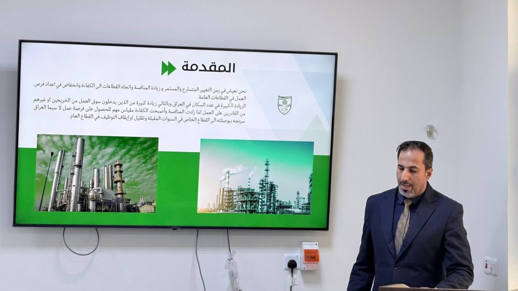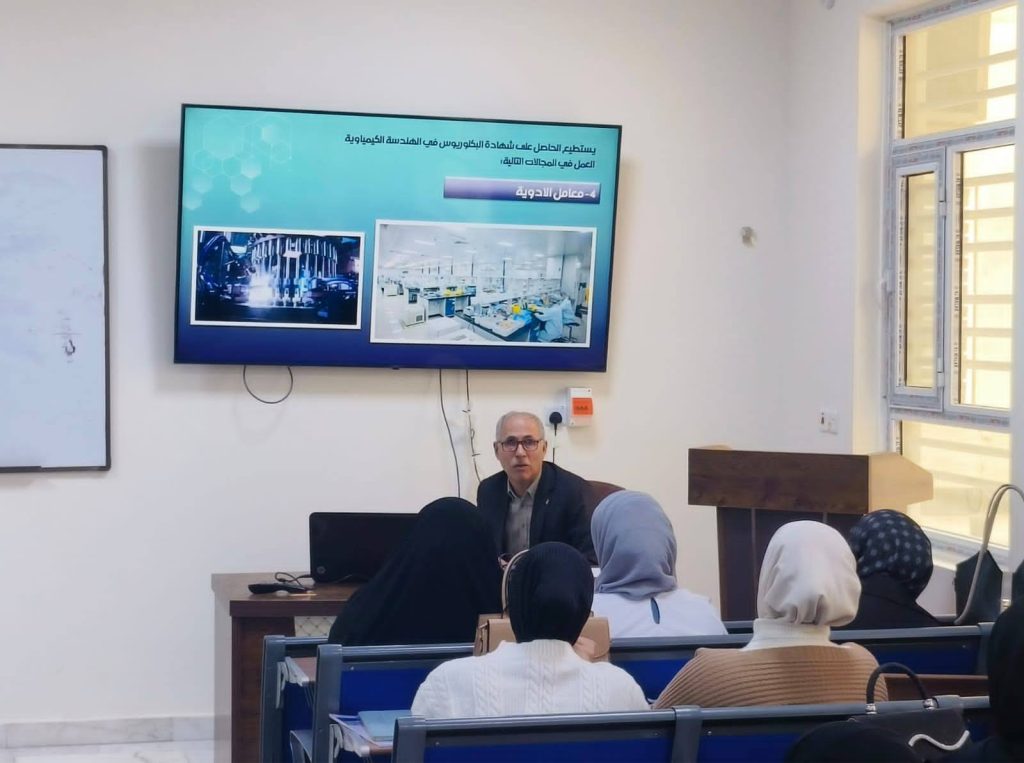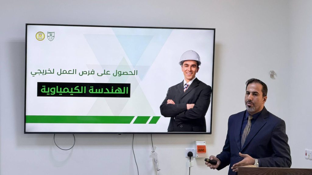 أما المحور الثاني فقد خُصّص للتعريف بأهم فرص العمل المتاحة لخريجي قسم الهندسة الكيمياوية في محافظة ميسان بشكل خاص، تم اطلاع الحاضرين على المجالات المختلفة التي تستوعب خريجي القسم في القطاعات المختلفة لاسيما القطاع الخاص، إضافة إلى استعراض أهم المعارف والمهارات التخصصية والناعمة والتي يجب التركيز عليها خلال فترة الدراسة وتطويرها بعد التخرج ليكون الخريج جاهز للانخراط في سوق العمل.