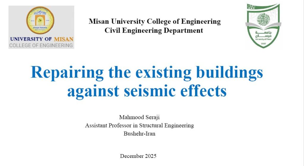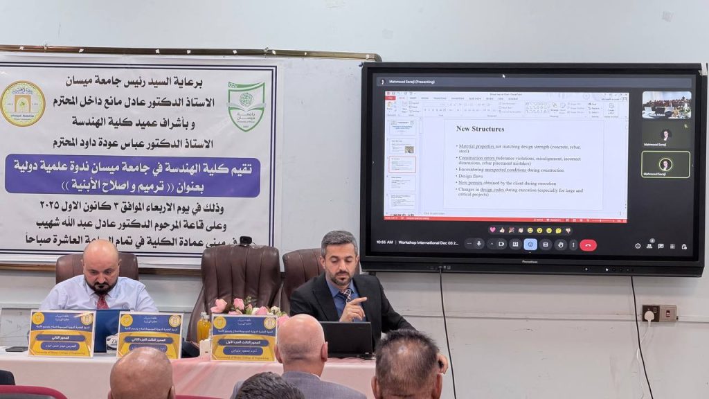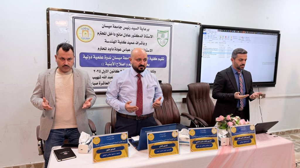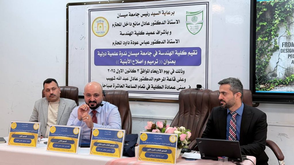 برعاية السيد رئيس جامعة ميسان الأستاذ الدكتور عادل مانع داخل، وبإشراف السيد عميد كلية الهندسة الأستاذ الدكتور عباس عوده داود، نظّم قسم الهندسة المدنية في كلية الهندسة – جامعة ميسان الندوة العلمية الدولية الموسومة “إصلاح وترميم الأبنية”، والتي تناولت أحدث التقنيات والاتجاهات العالمية في معالجة الأضرار الإنشائية وتعزيز استدامة الأبنية. شهدت الندوة مشاركة نخبة من الباحثين والخبراء من العراق وإيران، إضافةً إلى حضور واسع من الأكاديميين والمهندسين المختصين وممثلي الدوائر الحكومية ذات العلاقة.