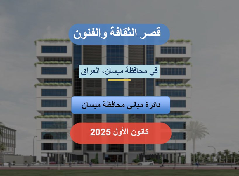 قدّم رئيس مهندسين أقدم المهندس محمد محمود هادي العلاق مدير مباني ميسان عرضاً تفصيلياً عن مشروع قصر الثقافة والفنون، شمل: