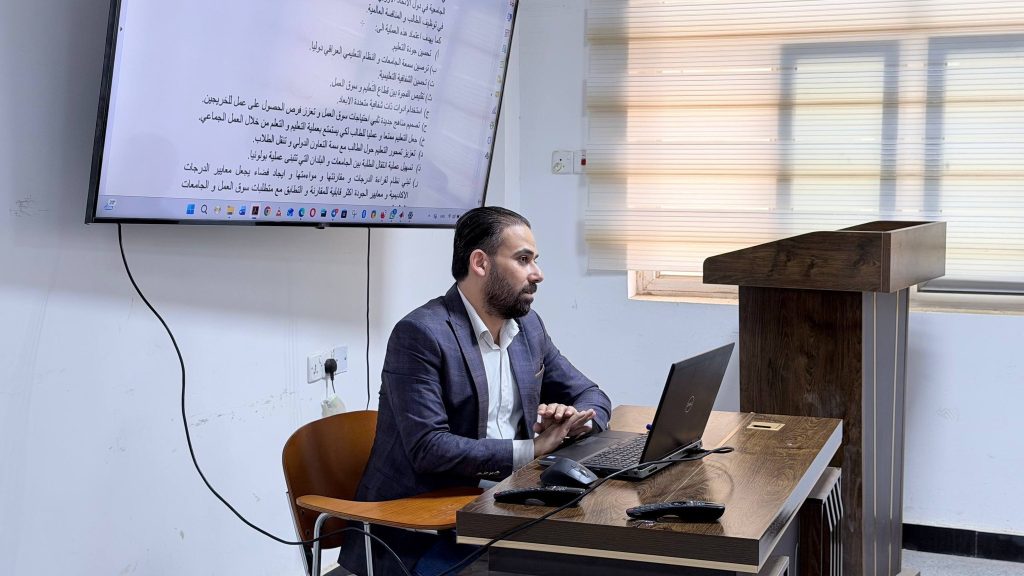 شهدت الورشة تفاعلًا مميزًا من الطلبة، وطرحت خلالها مجموعة من الأسئلة والاستفسارات التي عكست رغبتهم في فهم النظام الجديد والاستفادة منه بالشكل الأمثل، فيما أكد المحاضرون حرص القسم على تهيئة بيئة تعليمية حديثة تدعم التطور الأكاديمي للطلبة وتنسجم مع معايير وزارة التعليم العالي والبحث العلمي.