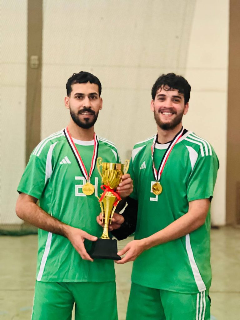 وجاءت المواجهة النهائية بين منتخب كلية الهندسة ومنتخب كلية التربية البدنية وعلوم الرياضة، حيث قدّم لاعبو كلية الهندسة أداءً استثنائيًا عكس روح الفريق والإعداد العالي، ليحسموا اللقاء بنتيجة 7 – 2 لصالح منتخب كليتنا، معلنين تتويج فريقنا الطلابي بطلاً لهذه البطولة كإنجاز رياضي جديد يضاف إلى سجل الكلية المشرف في النشاطات الطلابية.