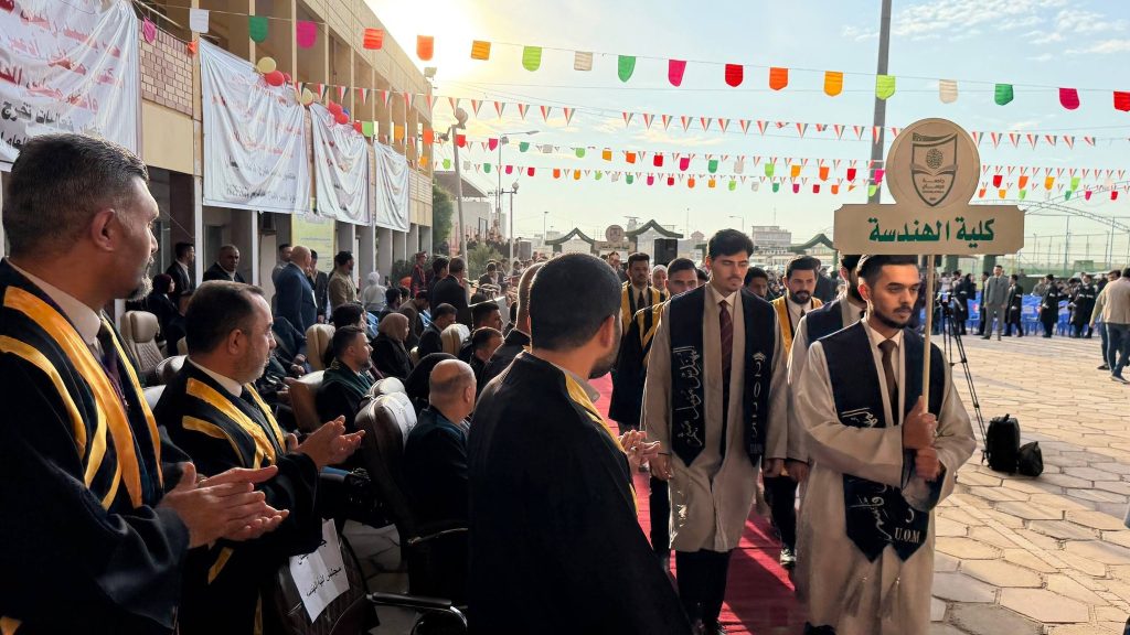 شاركت كلية الهندسة – جامعة ميسان في حفل تخرج طلبة الجامعة للدورة التاسعة عشرة، التي حملت اسم (دورة التميز والإبداع)، والذي أُقيم برعاية كريمة من وزير التعليم العالي والبحث العلمي الدكتور نعيم العبودي، وبإشراف مباشر من رئيس جامعة ميسان الأستاذ الدكتور عادل مانع الكعبي، وبحضور أكاديمي وحكومي ورسمي واسع، إلى جانب عوائل الطلبة الخريجين ووسائل الإعلام وقوى الأمن الداخلي.