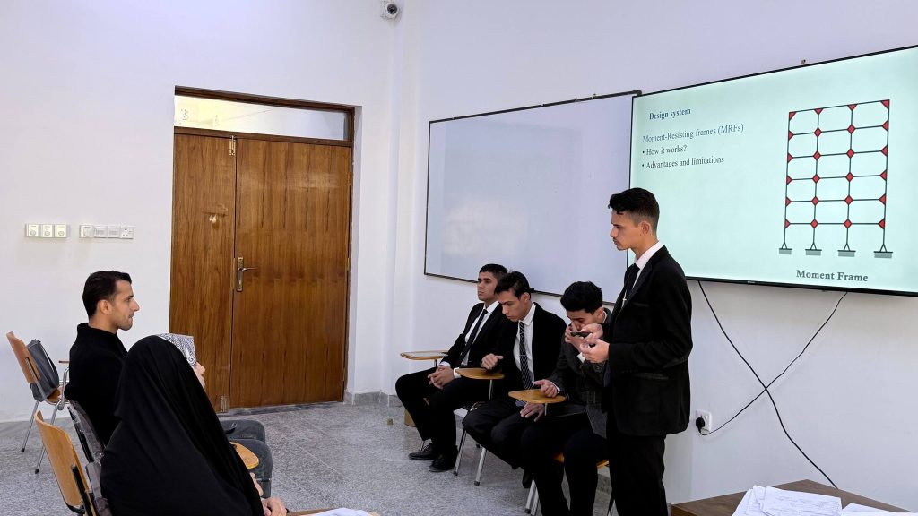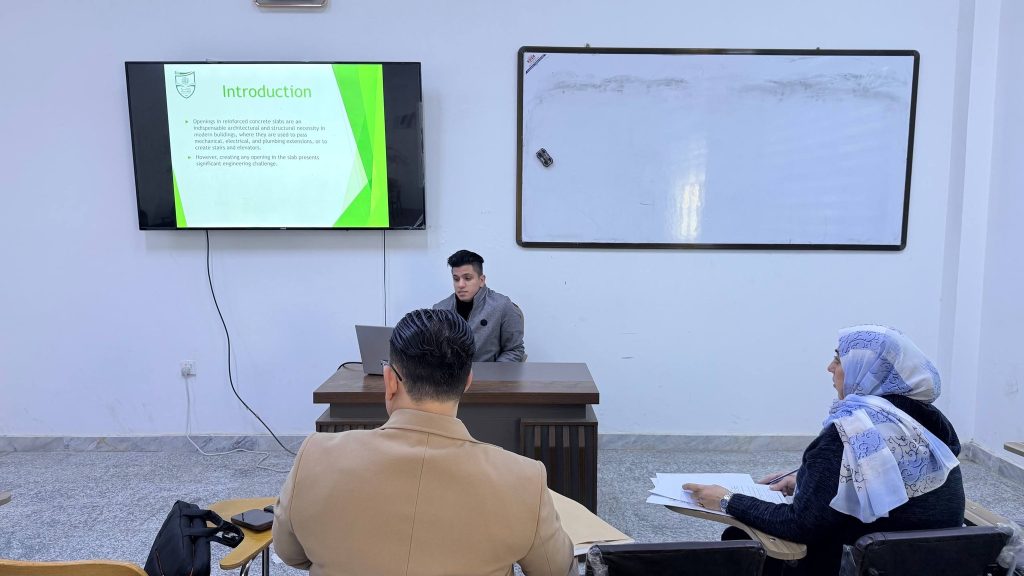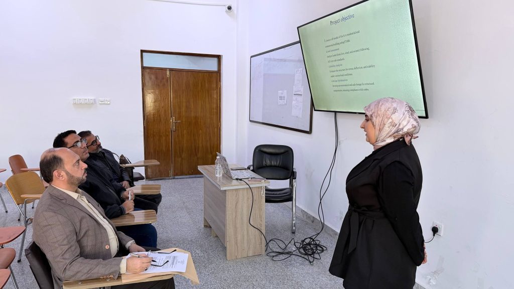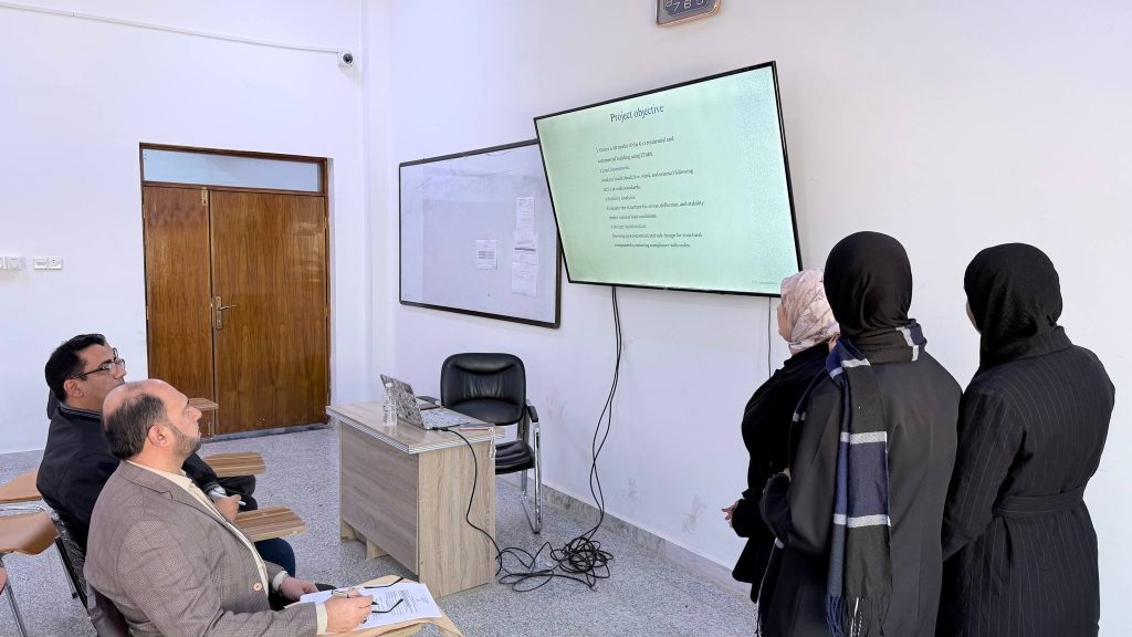 نظم قسم الهندسة المدنية في كلية الهندسة – جامعة ميسان يوم [الأثنين 22-12-2025] سمنار رقم (1) الخاص بمناقشة تقدم الأداء لمشاريع التخرج لطلبة المرحلة الرابعة الفصل الأول للعام الدراسي 2025– 2026، وذلك ضمن حرص أعضاء الهيئة التدريسية في القسم على متابعة تقدم الأداء في المشاريع وضمن إطار تطبيق معايير الاعتماد الأكاديمي المعتمدة من قبل مجلس الاعتماد العراقي للتعليم الهندسي ICAEE