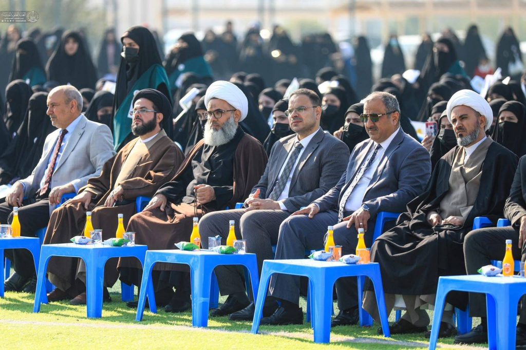 حيث شهد المهرجان توزيع العباءات الزينبية على الطالبات، وسط حضور رسمي وأكاديمي واسع ضمّ السيد رئيس جامعة ميسان الأستاذ الدكتور عادل مانع داخل، وعددًا من عمداء الكليات، إلى جانب شخصيات دينية وأكاديمية وممثلي العتبة العلوية المقدسة، فضلًا عن نخبة من التدريسيين والطلبة.