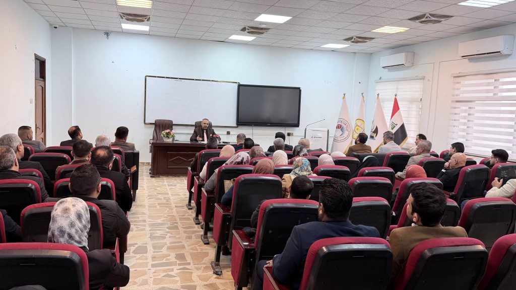 وأكد السيد عميد الكلية، خلال اللقاء، على الدور المحوري الذي يؤديه الكادر التدريسي في بناء مخرجات تعليمية رصينة، داعيًا إلى تعزيز روح العمل الجماعي وترسيخ مبادئ الانضباط والمسؤولية المهنية، بما ينسجم مع متطلبات الجودة والاعتماد الأكاديمي وتوجهات الجامعة.