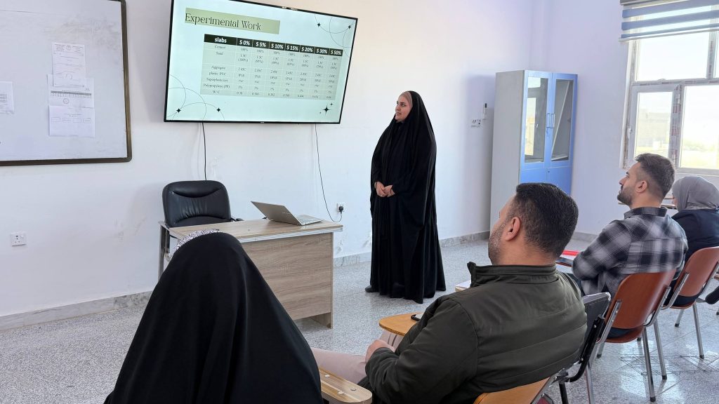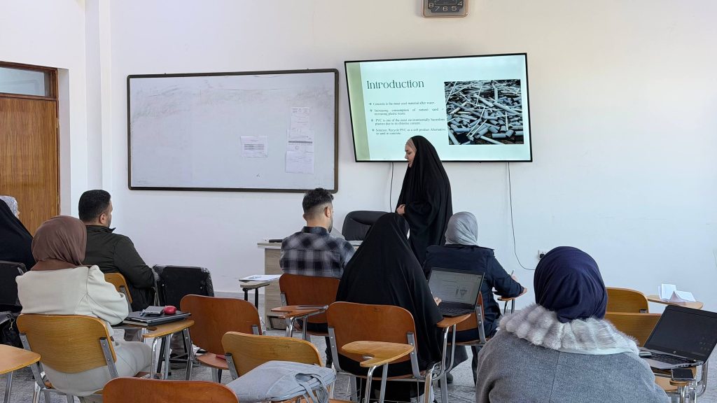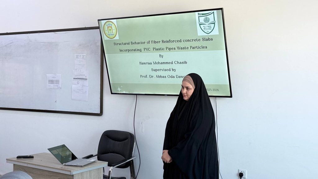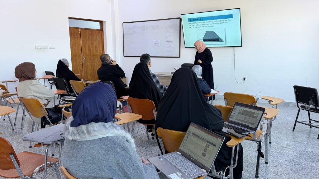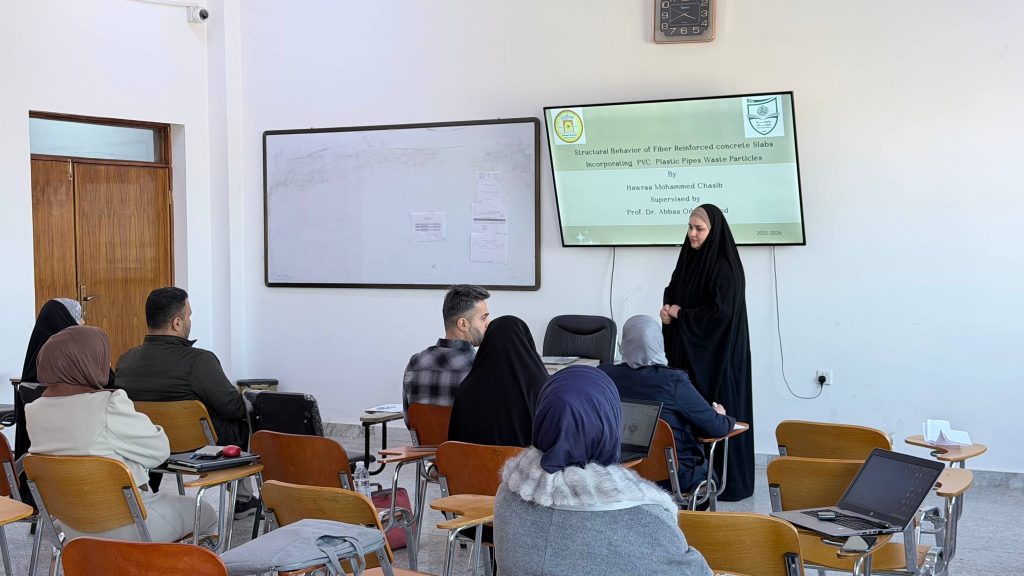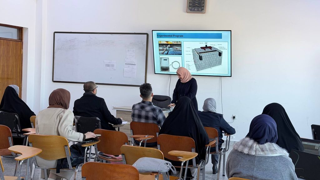أقام قسم الهندسة المدنية في يوم الثلاثاء الموافق 30 كانون الأول 2025 سمنار لطلبة الدراسات العليا (تخصص الانشاءات) لمتابعة مدى تقدم طلبة الماجستير في بحوثهم العلمية.