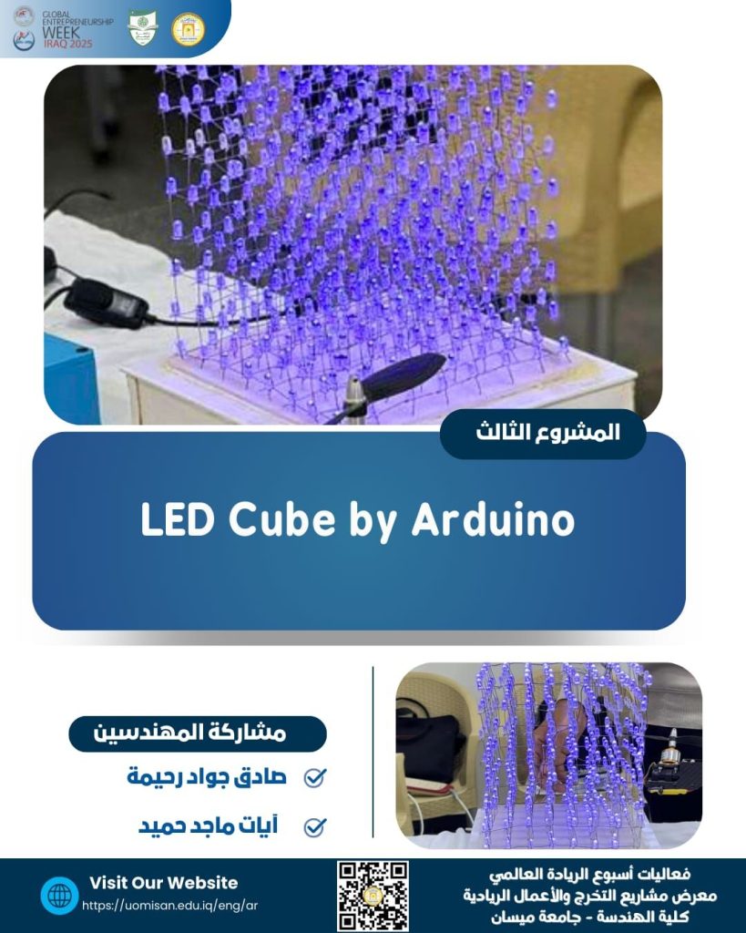 البرمجة: يتم إنشاء مصفوفة (Array) في الكود البرمجي تُمثل حالة كل ليد (ON/OFF) في الفراغ ثلاثي الأبعاد، ثم يتم إرسال هذه البيانات عبر “Shift Registers” ليتم ارسالها الى المصفوفة بشكل متوازي لتوليد الأشكال والأنماط.