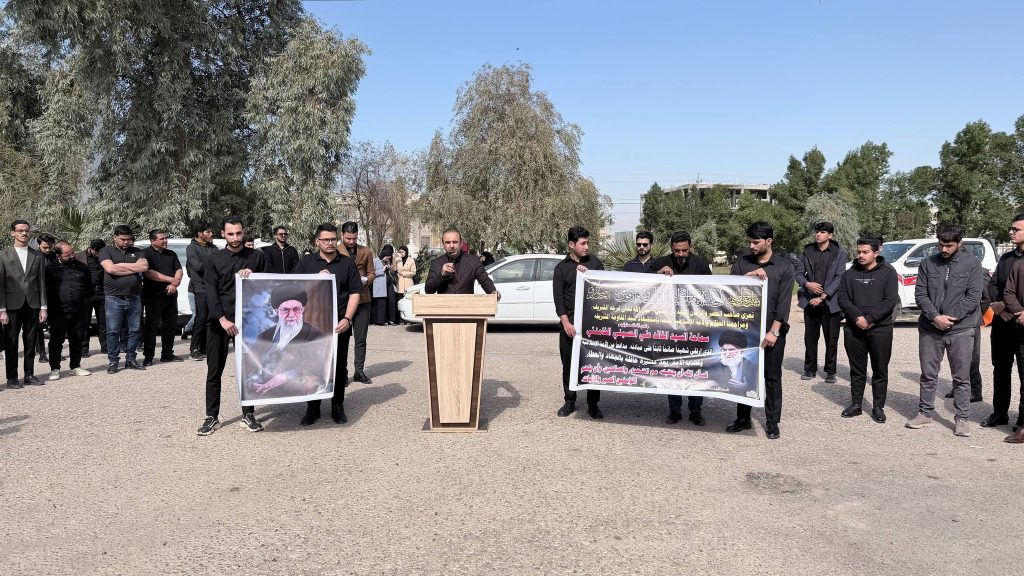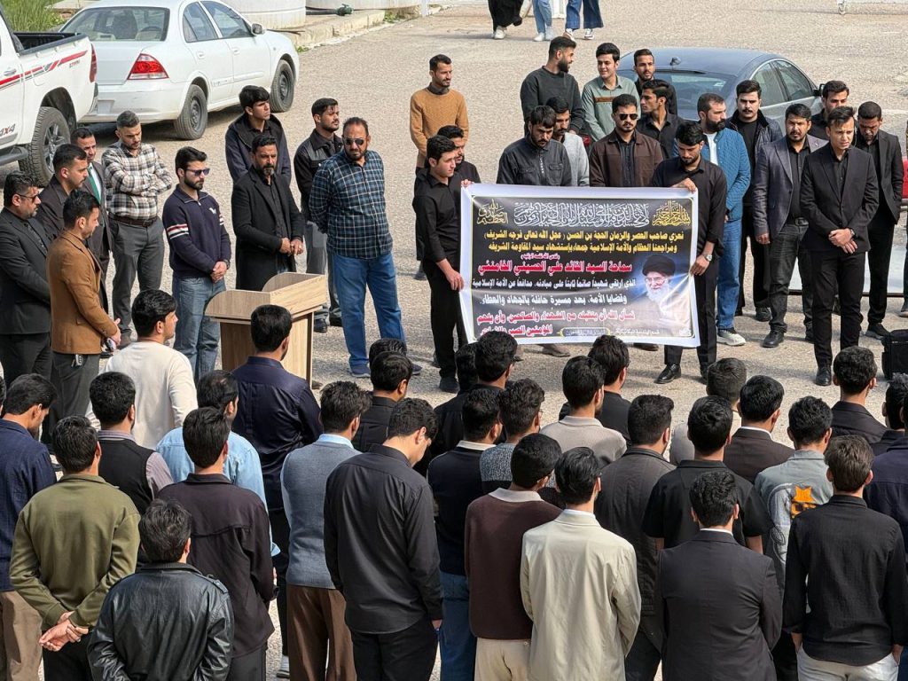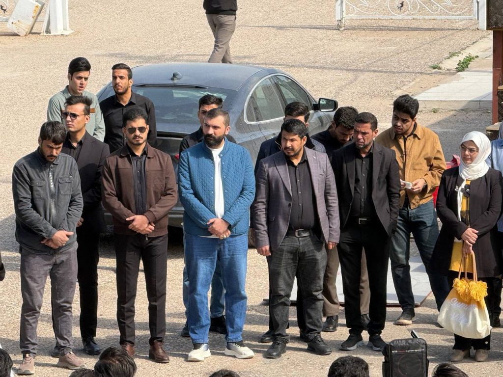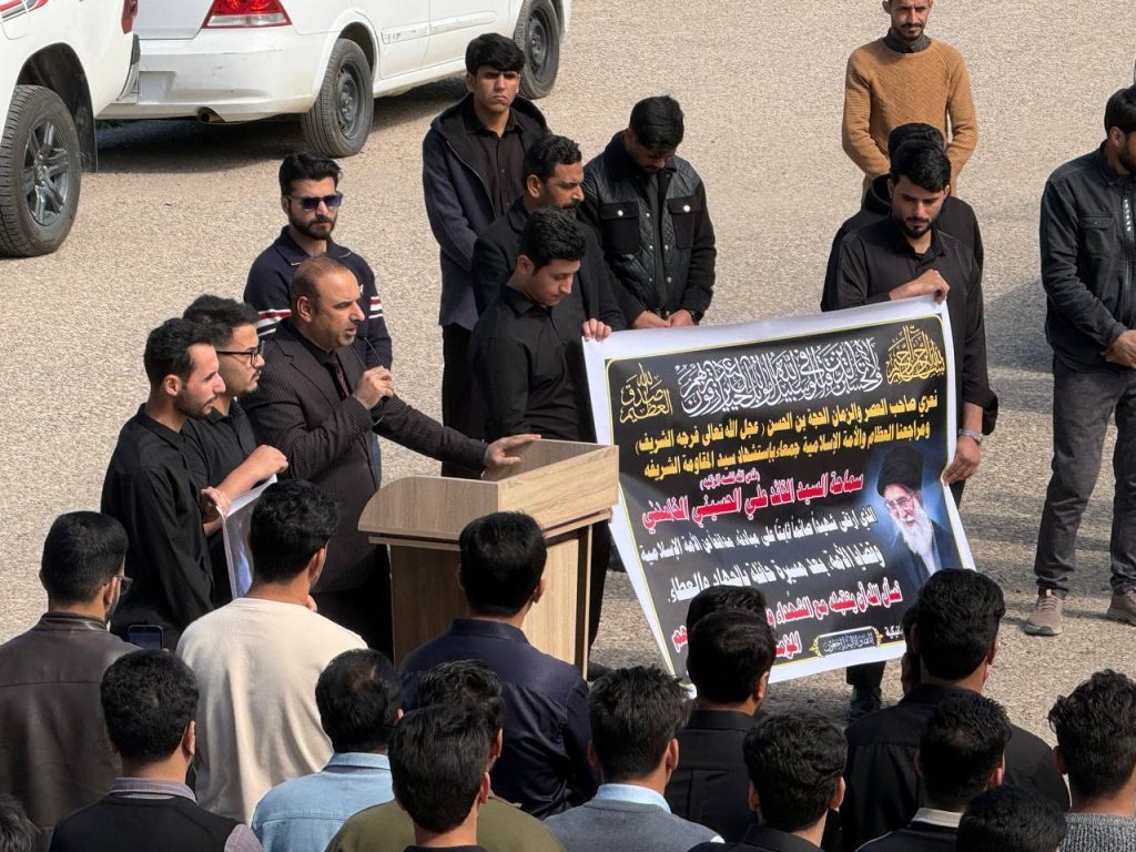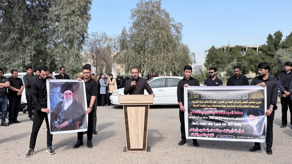 واستُهِلّت الوقفة بتلاوة آياتٍ مباركة من الذكر الحكيم بصوت الطالب أحمد راضي الجزائري، لتضفي على أجواء المناسبة روحاً من الخشوع والتأمل، تلتها كلمة للسيد عميد كلية الهندسة الأستاذ الدكتور عباس عودة داود، عبّر فيها عن استنكار الكلية الشديد للهجوم الذي استهدف الجمهورية الإسلامية، مندداً ومستنكرا اغتيال سماحة المرشد الأعلى للثورة الإسلامية السيد علي الخامنئي قدس الله نفسه زكية، ومؤكداً أن مثل هذه الاعتداءات لا تزيد الشعوب إلا تمسكاً بقيمها ومبادئها، وأن المواقف الحرة تبقى شاهداً على صلابة الإرادة في مواجهة التحديات.