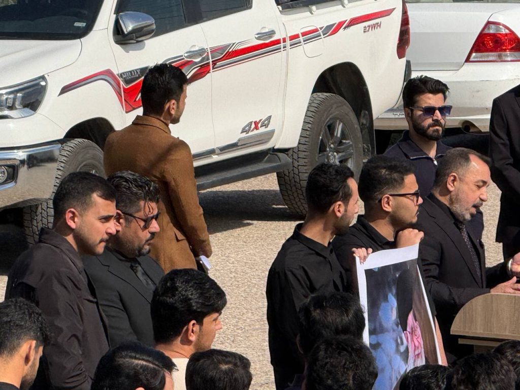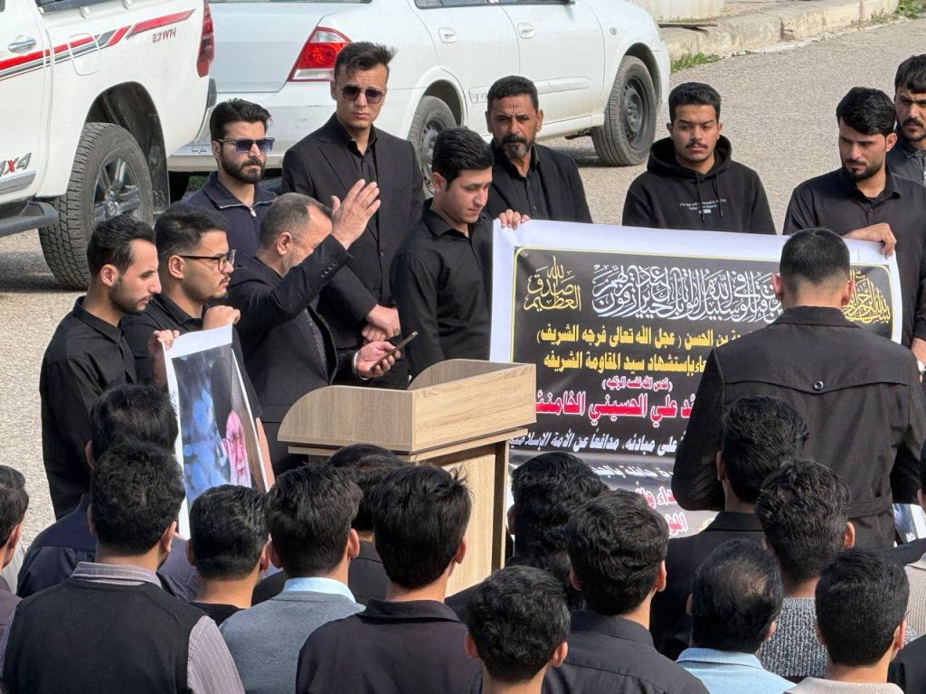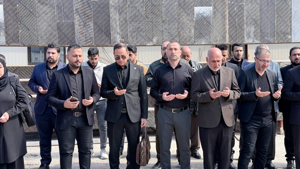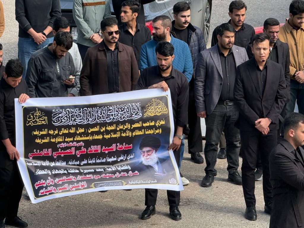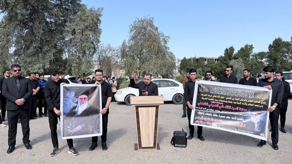 واستُهِلّت الوقفة بتلاوة آياتٍ مباركة من الذكر الحكيم بصوت الطالب أحمد راضي الجزائري، لتضفي على أجواء المناسبة روحاً من الخشوع والتأمل، تلتها كلمة للسيد عميد كلية الهندسة الأستاذ الدكتور عباس عودة داود، عبّر فيها عن استنكار الكلية الشديد للهجوم الذي استهدف الجمهورية الإسلامية، مندداً ومستنكرا اغتيال سماحة المرشد الأعلى للثورة الإسلامية السيد علي الخامنئي قدس الله نفسه زكية، ومؤكداً أن مثل هذه الاعتداءات لا تزيد الشعوب إلا تمسكاً بقيمها ومبادئها، وأن المواقف الحرة تبقى شاهداً على صلابة الإرادة في مواجهة التحديات.
