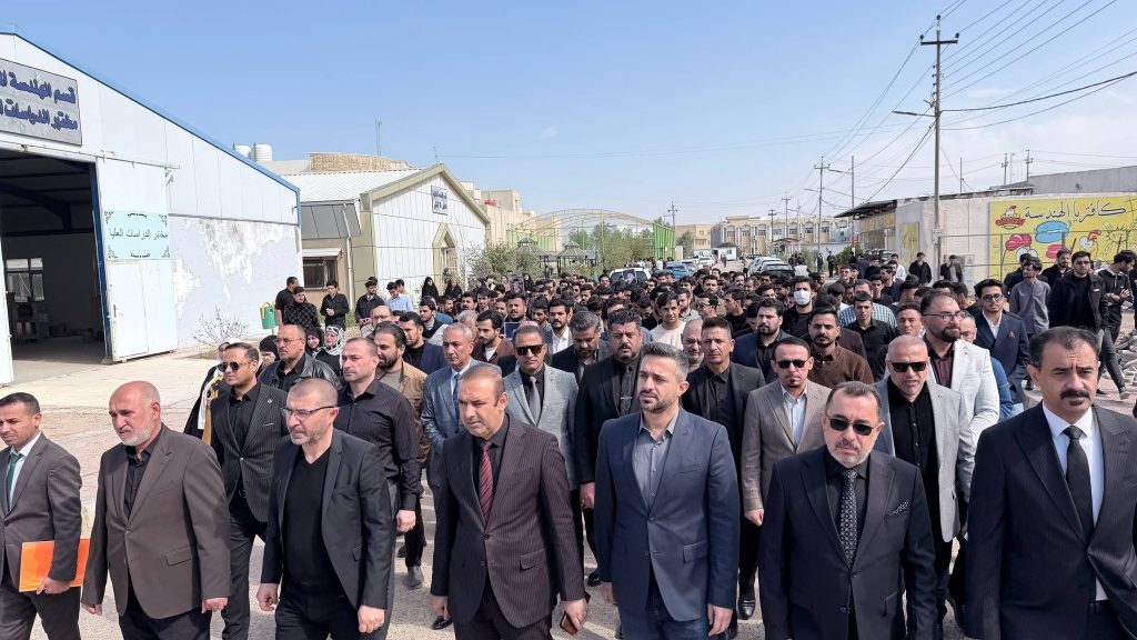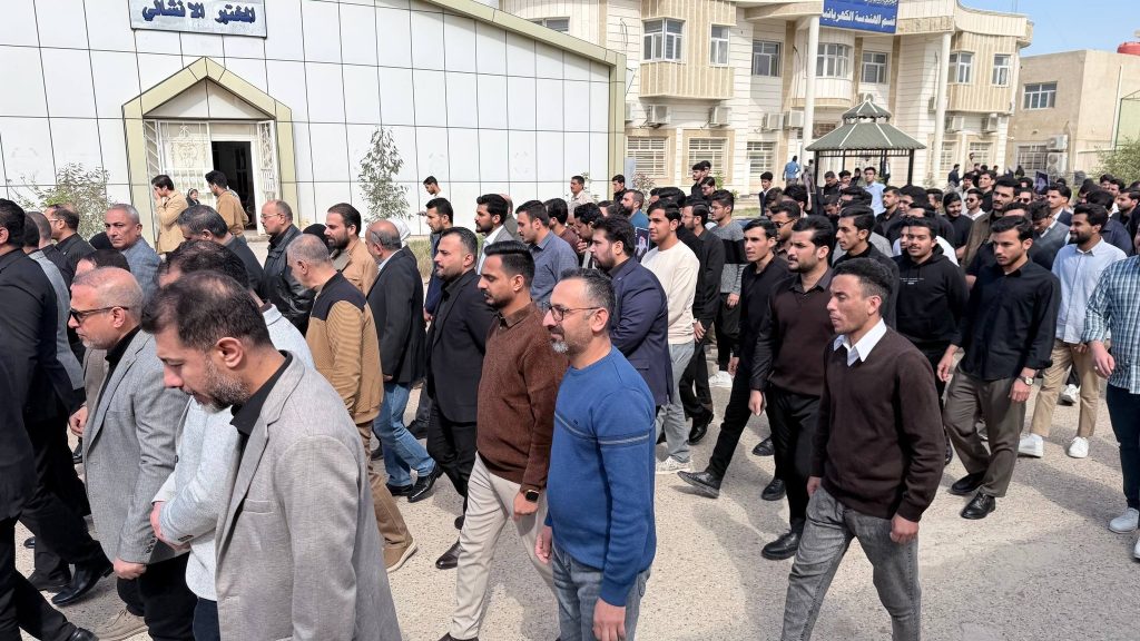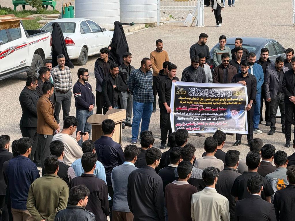 شهدت كلية الهندسة – جامعة ميسان وقفةً تضامنيةً واستنكاريةً للتنديد بالعدوان على الجمهورية الإسلامية، واستذكاراً لمقام السيد الشهيد المرشد علي الخامنئي قدس الله نفسه الزكية، وذلك بتنظيم من وحدة شؤون المرأة بالتعاون مع شعبة النشاطات الطلابية، وبحضور السيد عميد الكلية الأستاذ الدكتور عباس عودة داود، والسادة المعاونين، والسادة رؤساء الأقسام العلمية، وجمعٍ من التدريسيين والموظفين، إلى جانب طلبة الأقسام العلمية في الكلية.