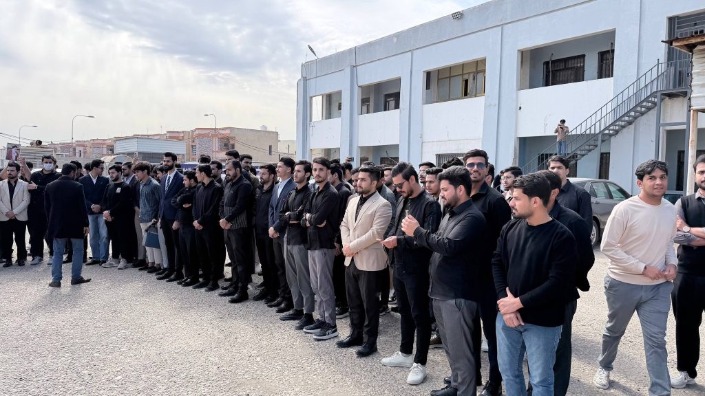 كما ألقى السيد رئيس قسم هندسة النفط الأستاذ المساعد الدكتور جبار رحيم راشد كلمةً أكد فيها أن هذه الوقفة تمثل موقفاً أخلاقياً وإنسانياً يعبر عن تضامن الأوساط الأكاديمية مع القضايا العادلة، واستذكاراً لسيرة القادة الذين تركوا أثراً في مسيرة الأمة.
