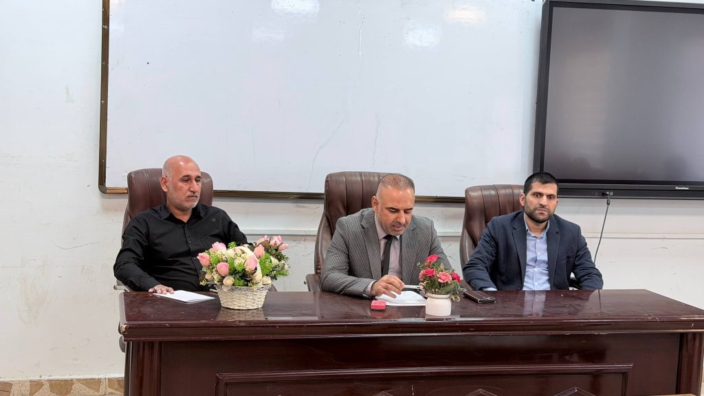 وجرى خلال الاجتماع مناقشة واقع المختبرات العلمية وسبل تطويرها، حيث تم استعراض أبرز المعوقات التي تواجه العمل المختبري، والعمل على وضع الحلول المناسبة للنهوض بمستوى الأداء. كما أكد السيد العميد على أهمية تحديث الأجهزة والمعدات المختبرية، والالتزام بإجراءات السلامة المهنية والتعليمات المعتمدة داخل المختبرات.