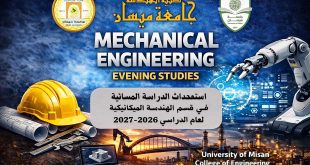 يسرُّ عمادة كلية الهندسة ورئاسة قسم الهندسة الميكانيكية أن تزف بشرى استحداث الدراسة المسائية في …
