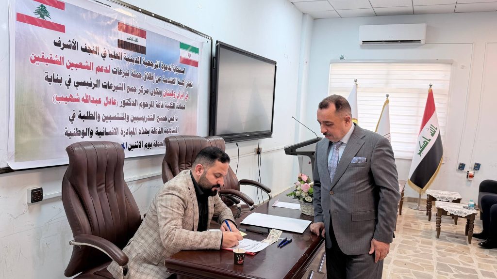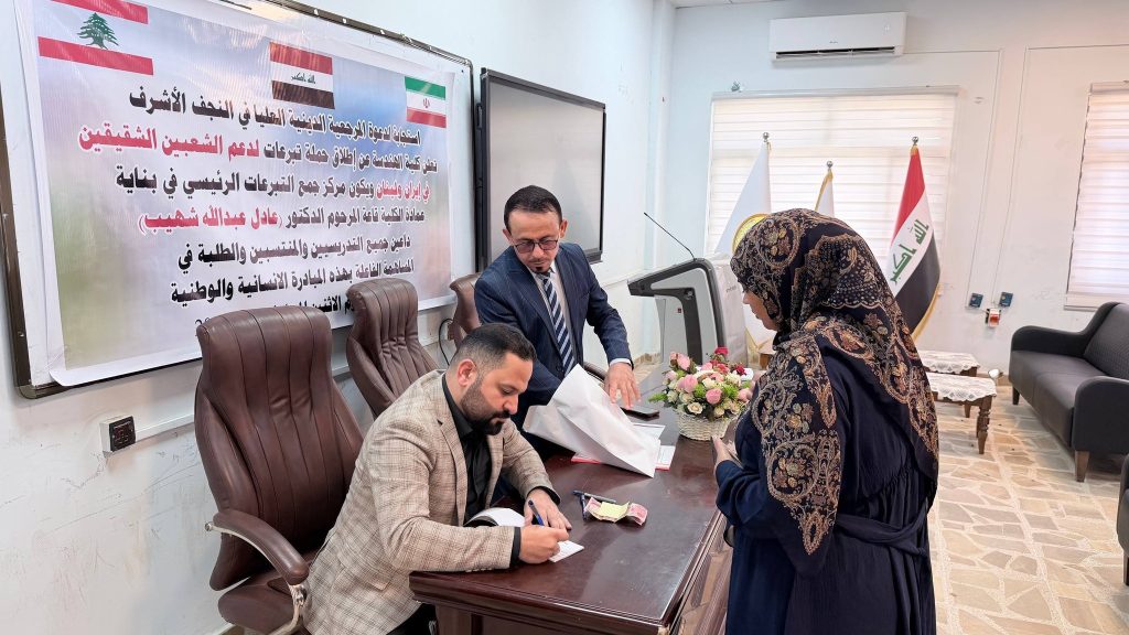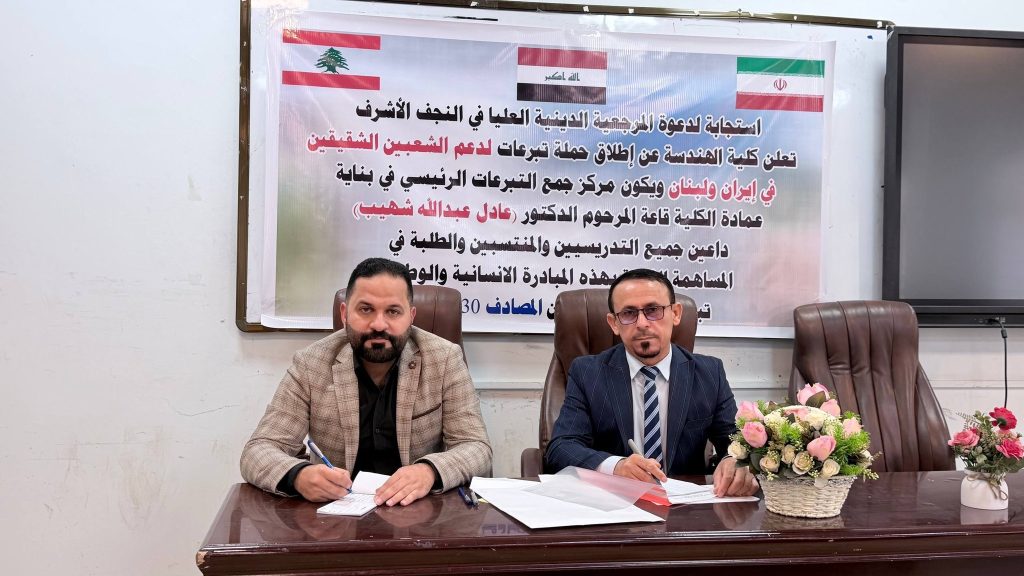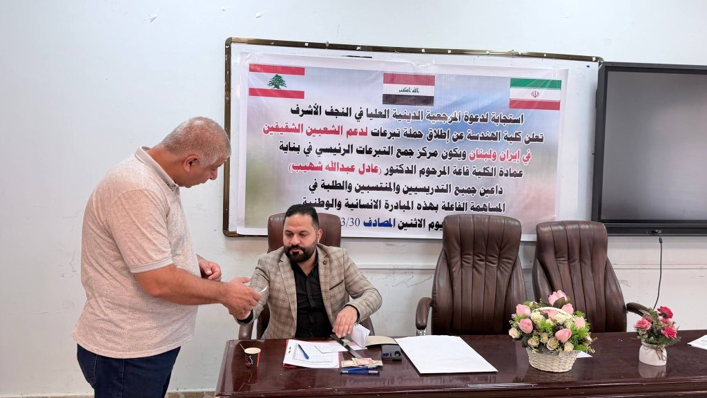 برعاية السيد رئيس جامعة ميسان الأستاذ الدكتور عادل مانع داخل، وبإشراف السيد عميد كلية الهندسة الأستاذ الدكتور عباس عوده داود، تواصل كلية الهندسة حملتها الإنسانية للتبرعات دعماً للجمهورية الإسلامية الإيرانية والشعب اللبناني، والتي استمرت لعدة أيام وشهدت تفاعلاً واسعاً من قبل التدريسيين والموظفين وطلبة الكلية.