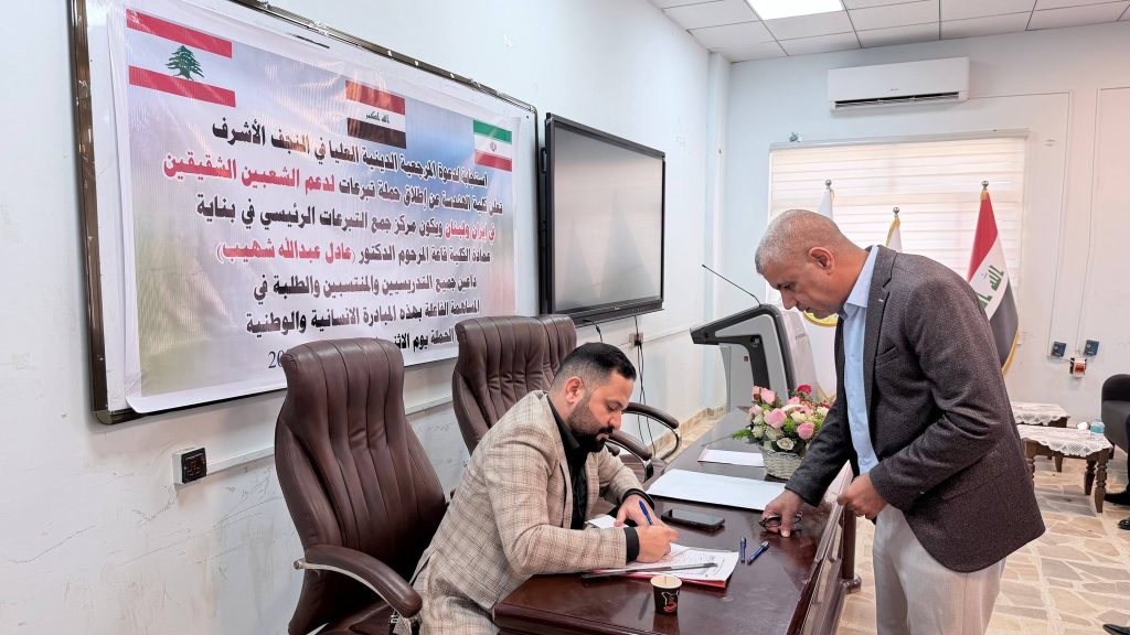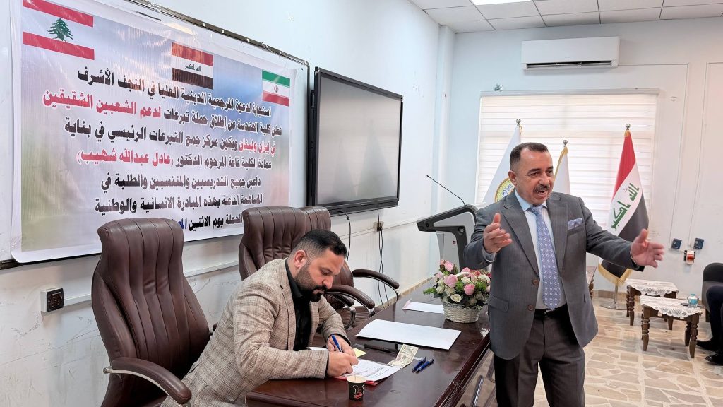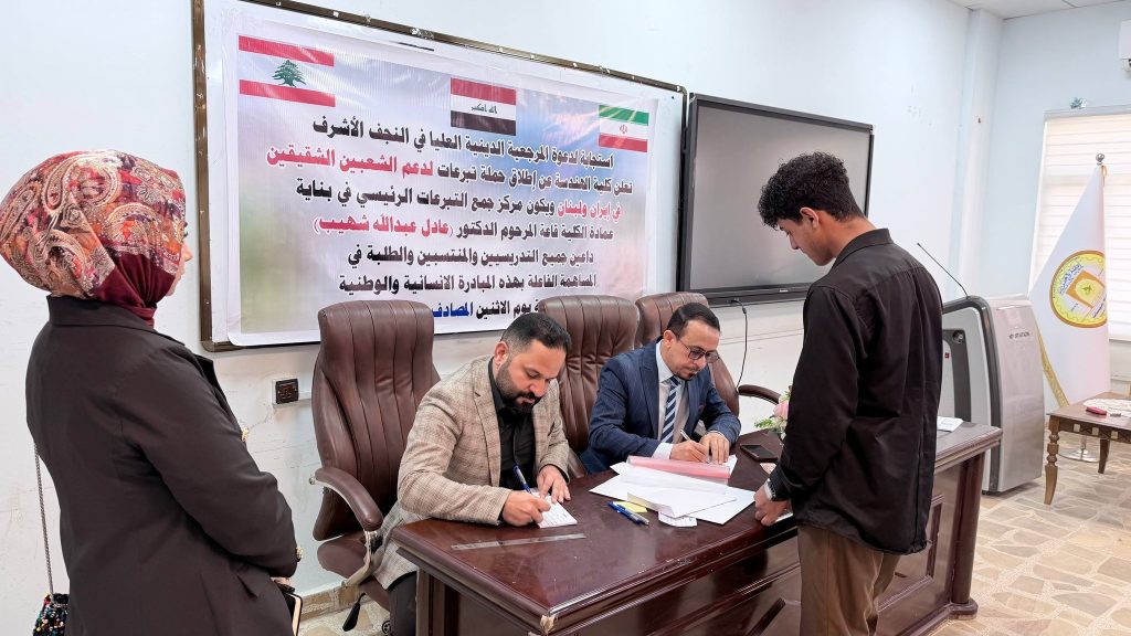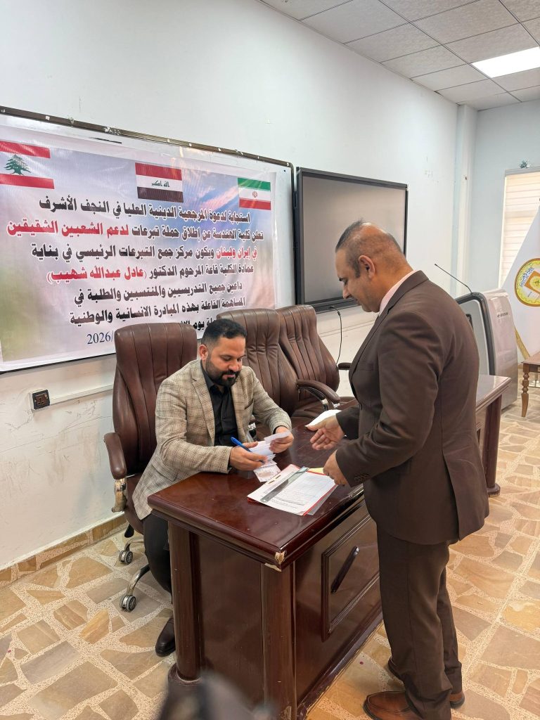 وفي هذا السياق، نلفت عناية جميع التدريسيين والموظفين وطلبتنا الأعزاء الراغبين بالتبرع، إلى أن يوم غدٍ الاثنين الموافق 6/4/2026 سيكون آخر يوم لاستلام التبرعات ضمن هذه الحملة في بناية عمادة كلية الهندسة قاعة المرحوم الدكتور عادل عبد الله شهيب ، لذا اقتضى التنويه لمن يرغب بالمساهمة قبل انتهاء الموعد المحدد.