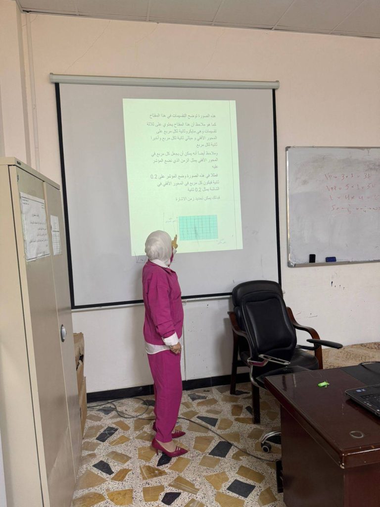 هدفت الورشة إلى تعريف المشاركين بجهاز الأوسيلوسكوب وأهميته في تحليل وقياس الإشارات الكهربائية، حيث تضمنت شرحًا لمكونات الجهاز وآلية عمله، بالإضافة إلى تدريب عملي على كيفية قياس الجهد والزمن والتردد وقراءة الإشارات بدقة،