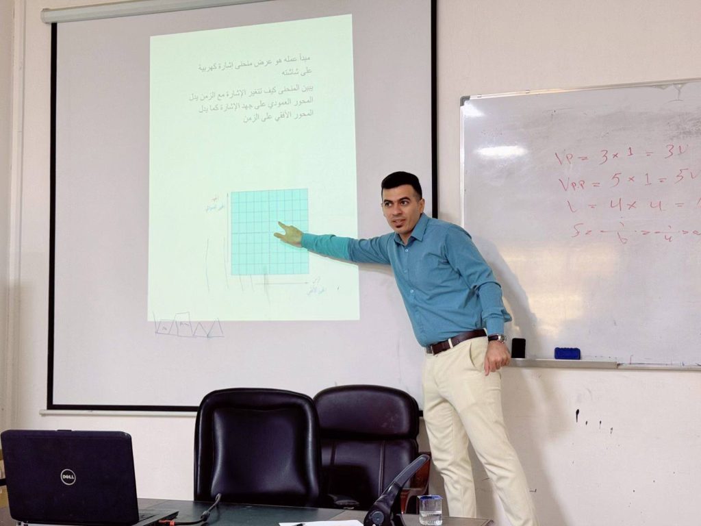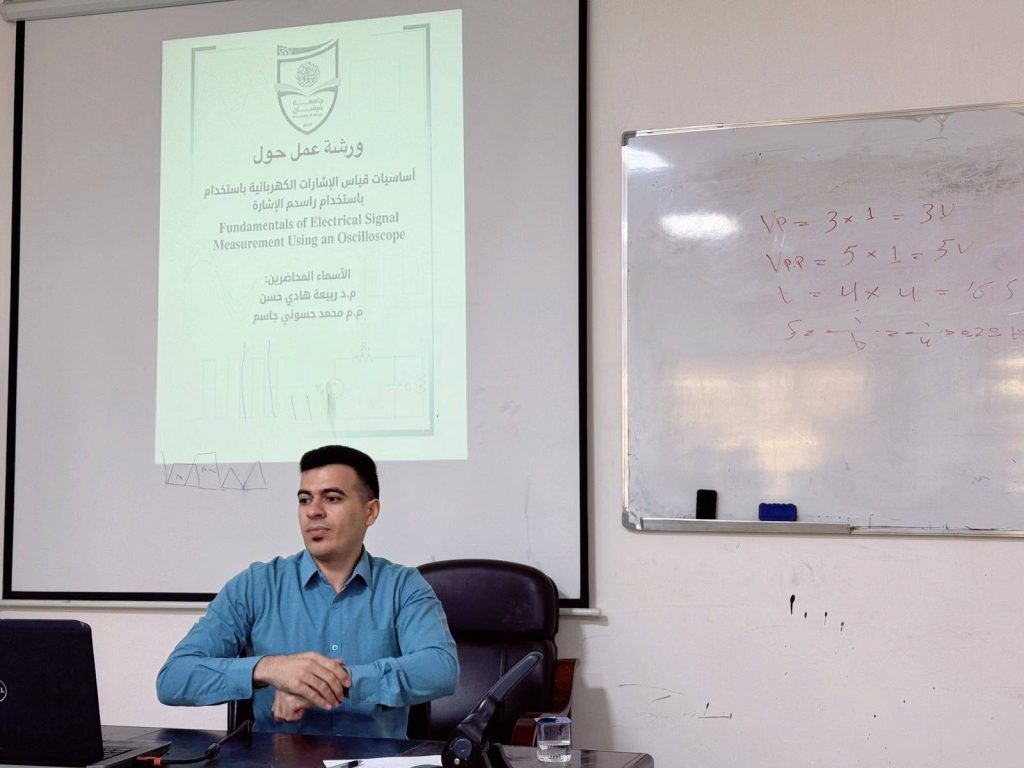نظّم قسم الهندسة الكهربائية في كليتنا ورشة عمل تدريبية, تناولت اساسيات قياس الاشارات الكهربائية بأستخدام راسم الاشارة (Oscilloscope) بحضور نخبة من الكادر التدريسي لقسم الكهرباء.
