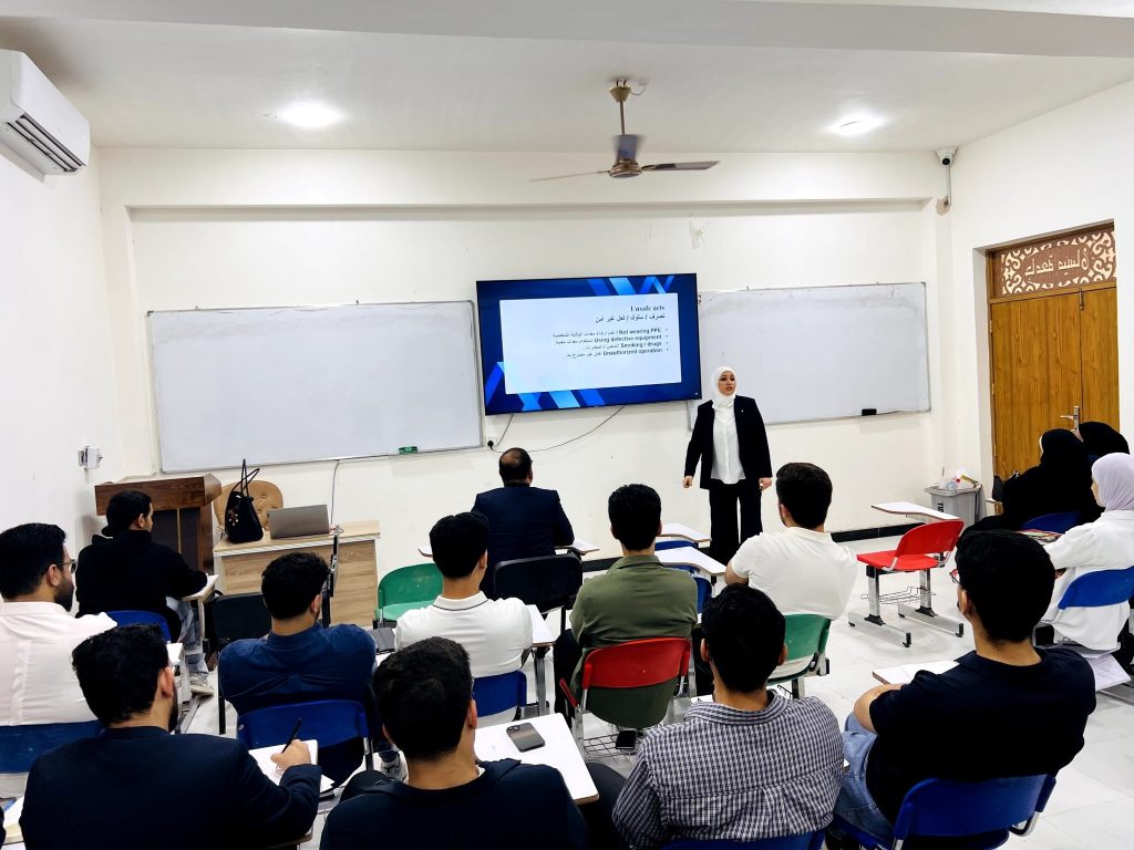 وهدفت الورشة إلى تعزيز ثقافة السلامة المهنية لدى طلبة قسم هندسة النفط، وتنمية قدراتهم على التعامل مع التحديات الميدانية، بما يسهم في إعدادهم بشكل أفضل لسوق العمل.