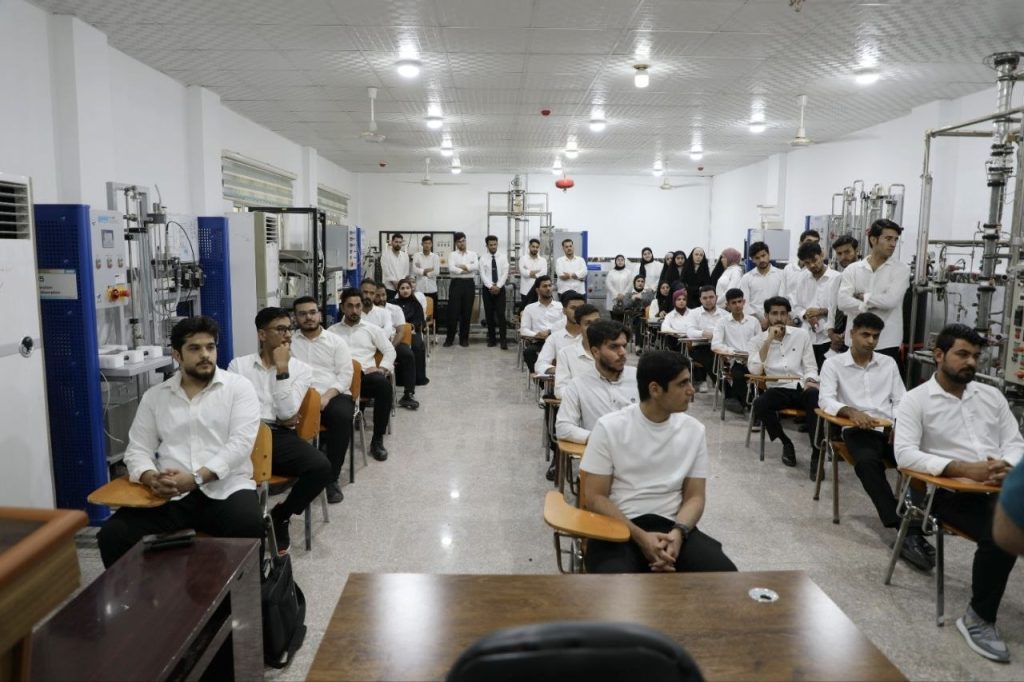 وتضمنت الزيارة جولة ميدانية اطّلع خلالها الطلبة على عدد من المختبرات التخصصية، منها مختبرات المعدات الصناعية، والوحدات التشغيلية، وجريان الموائع، ومٌشبه التصفية، إضافة إلى مختبر الكيمياء التحليلية، ومختبر خواص النفط، ومختبر عمليات الغاز. وقدّم المسؤولون عن هذه المختبرات شروحات موجزة حول أبرز الأجهزة والتجارب العملية، مع بيان آفاق الاستفادة منها في سوق العمل وتنمية المهارات التطبيقية للطلبة.