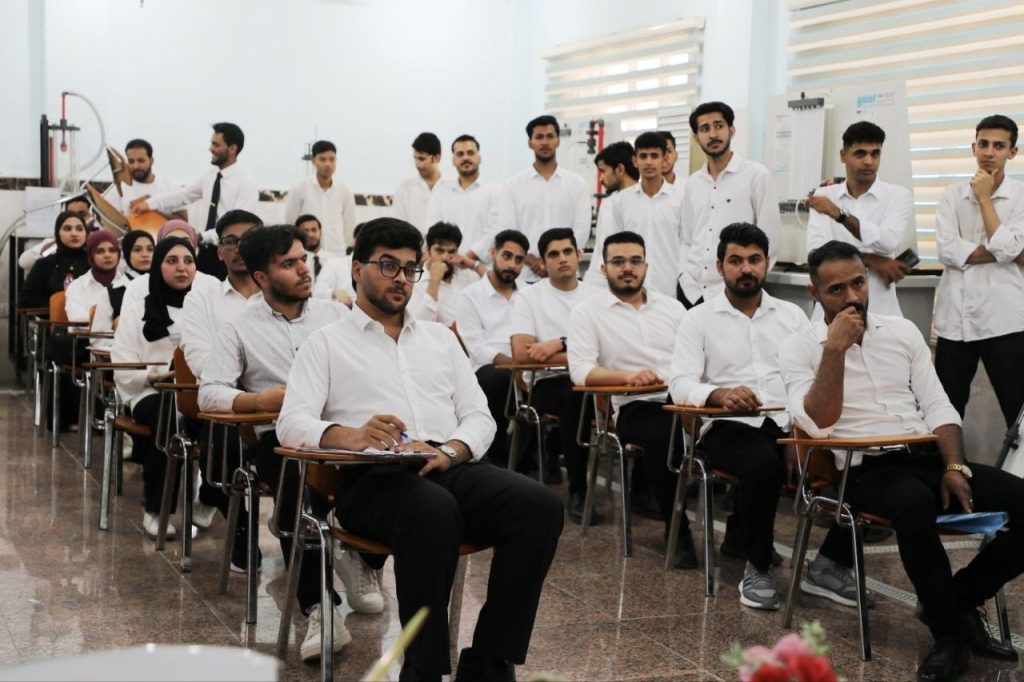 برعاية عميد كلية الهندسة الأستاذ الدكتور عباس عودة داود، وفي إطار تعزيز التعاون المشترك بين المؤسسات التعليمية في محافظة ميسان، نظّم قسم الهندسة الكيمياوية في كلية الهندسة زيارة علمية لطلبة المرحلة الثالثة إلى مختبرات قسم التصفية في معهد التدريب النفطي في ميسان، وذلك يوم الأحد الموافق 19 نيسان 2026.