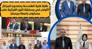 برعاية السيد رئيس جامعة ميسان الأستاذ الدكتور عادل مانع داخل، نظّم قسم النشاطات الطلابية في رئاسة الجامعة مسابقة النور القرآنية (طلاب – طالبات)، والتي أُقيمت على قاعة المؤتمرات في كلية العلوم السياسية بمشاركة ممثلين عن كليات الجامعة كافة.وقد شاركت شعبة النشاطات الطلابية في كلية الهندسة بفعالية مميزة في هذه المسابقة، …