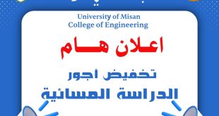 عمادة كلية الهندسة توجه بتمديد مدة التقديم لتخفيض اجور الدراسة المسائية للفئات المشمولة
