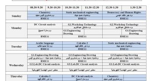 أكمل القراءة »جدول المحاضرات الأسبوعي لقسم الهندسة الكهربائية